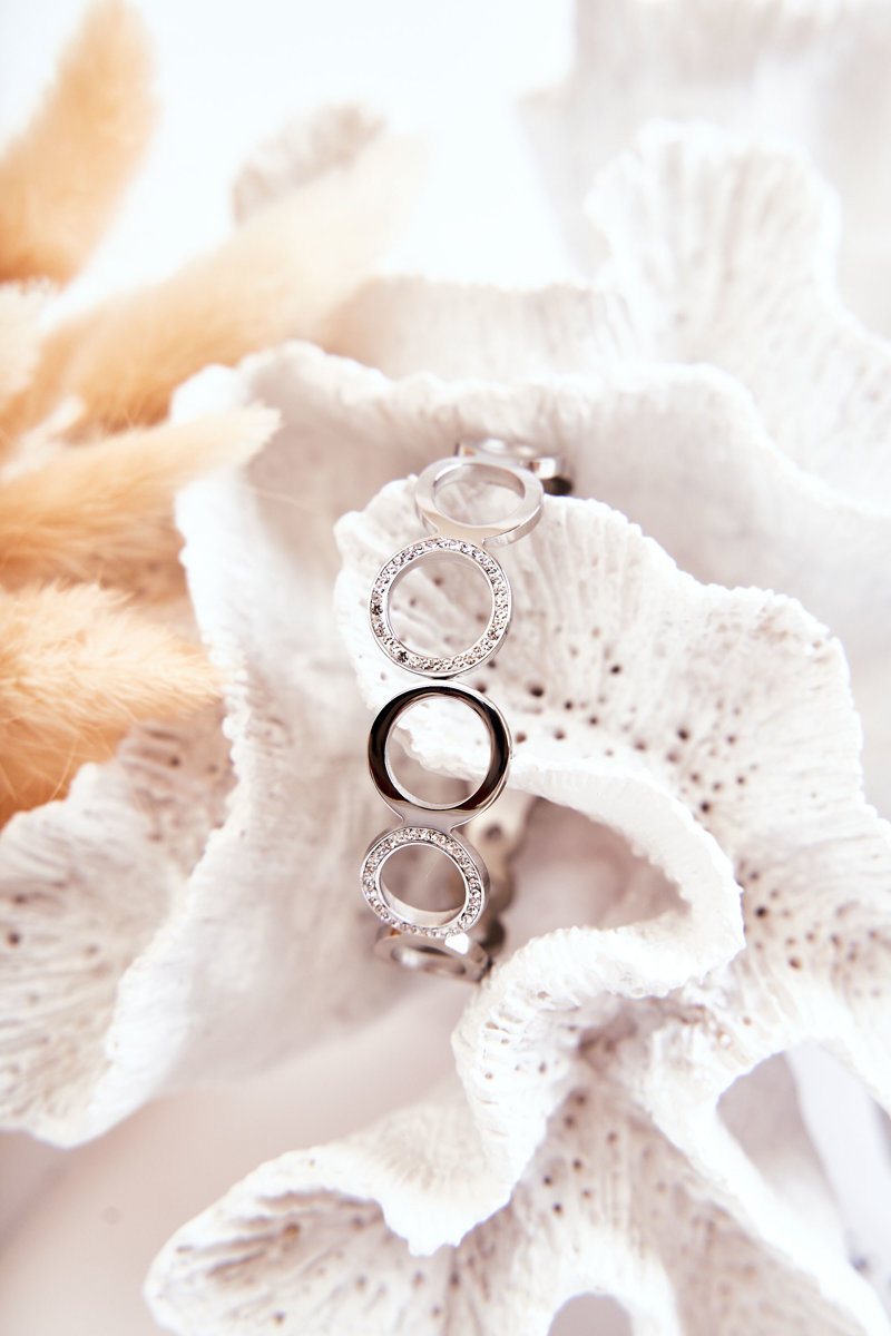 Dámsky oceľový náramok s zirkónmi strieborná viera
