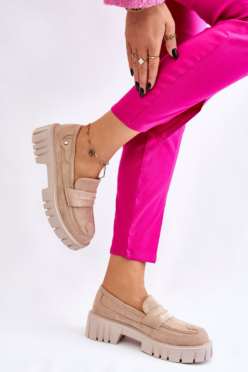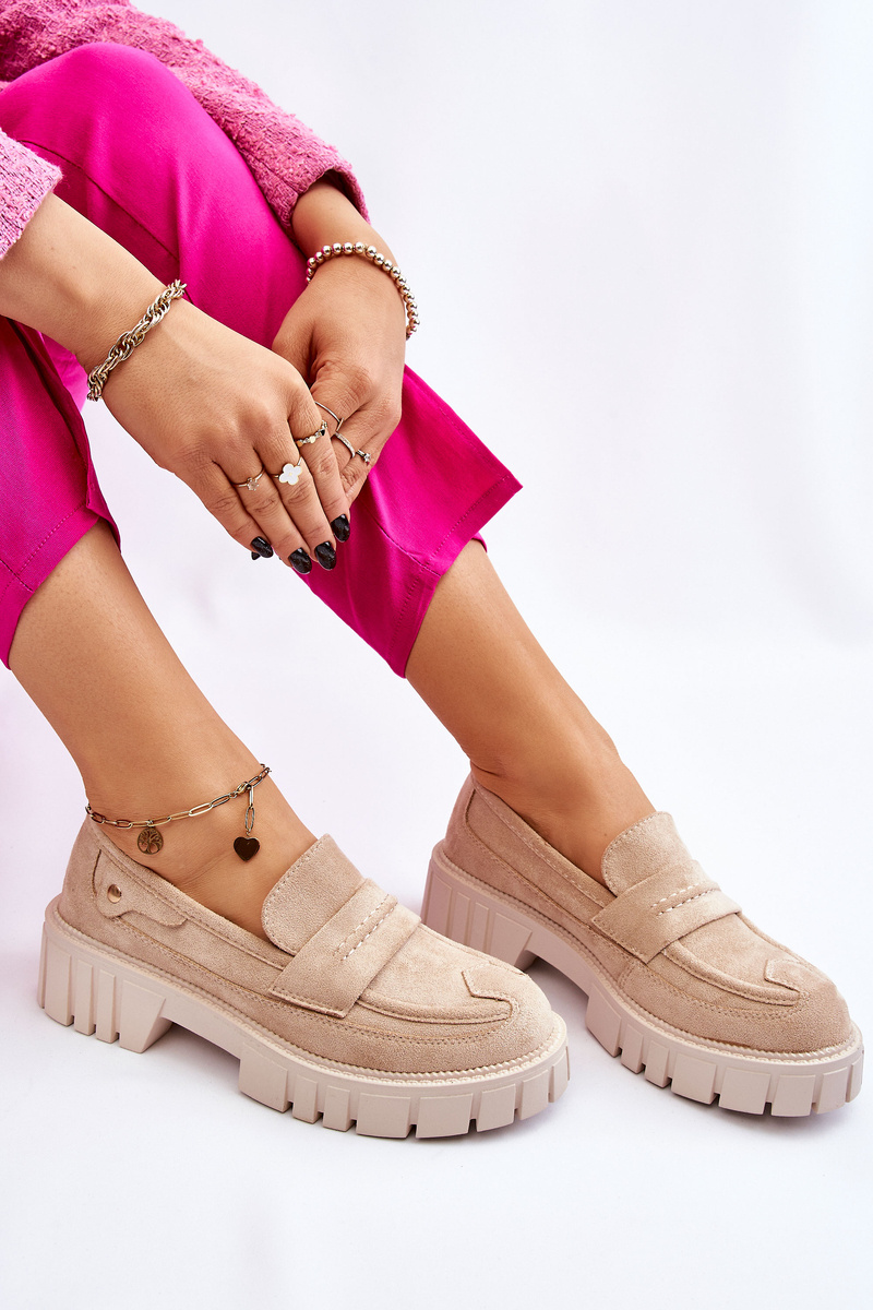 Skvelé topánky v štýle Loafer boli vyrobené z vysoko kvalitnej ekologickej kože so srdiečkami. Charakteristická dekorácia vo forme popruhu na prednej strane a nitovanie na boku hornej časti. Majú masívnu plošinu a plochú pätu. Mäkká vložka vyrobená z ekologickej kože sa pri použití obuvi postará o pohodlie. Okrem toho je päta stuhnutá. Pri výbere veľkosti navrhnite tabuľku veľkosti. p>