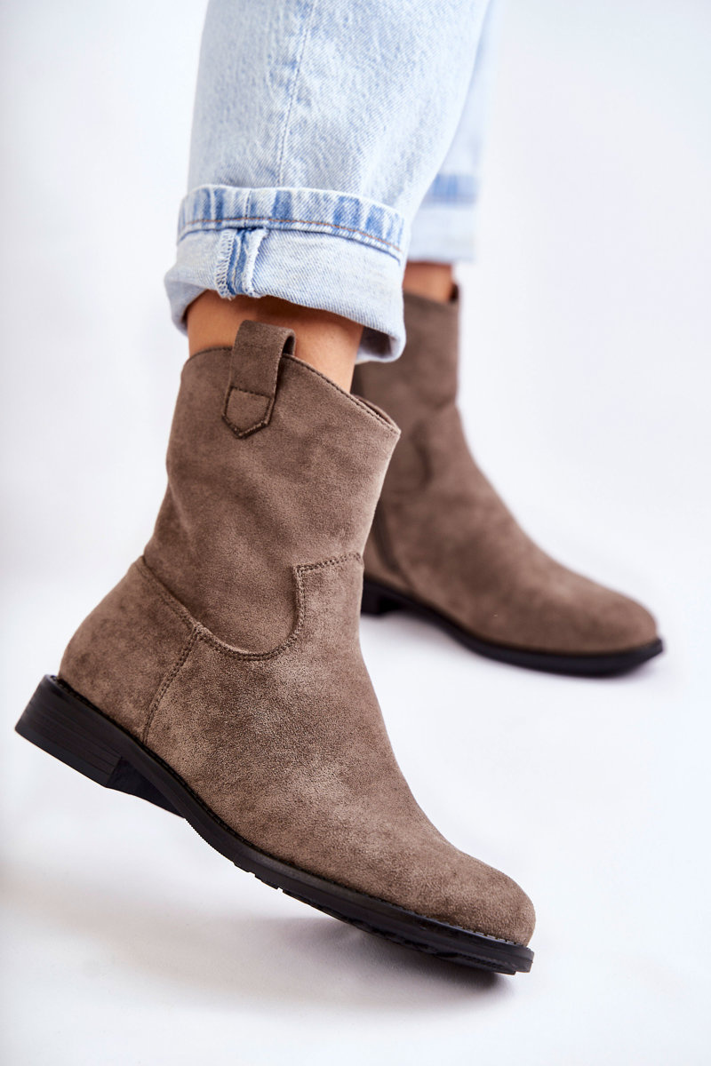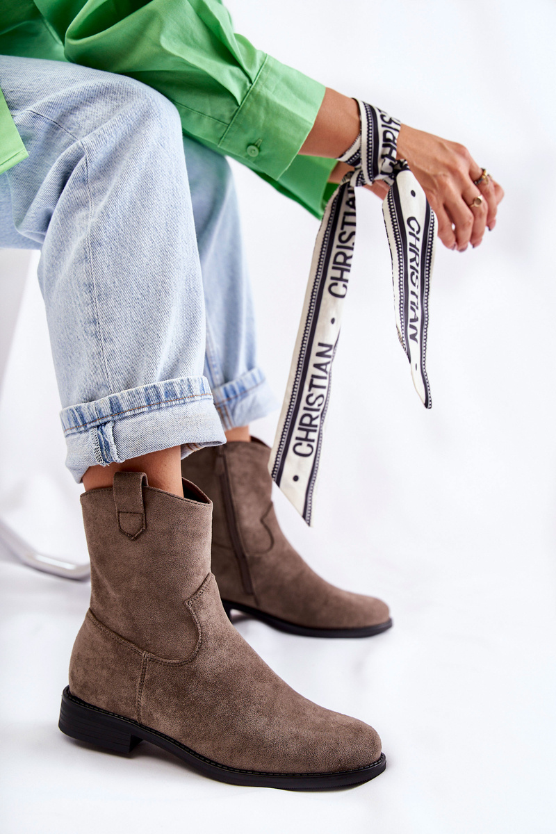 Klasické ženské topánky boli vyrobené z ekologického semišu, aby sa dotkli. Na zvršku je jemné šitie. Tento model má slučku, ktorá uľahčuje inštaláciu obuvi na vonkajšej strane. Čižmy majú tiež posúvač. Ploché vložené. Majú stuhnutú pätu a ekologickú vložku. Pri výbere veľkosti navrhnite tabuľku veľkosti. p>