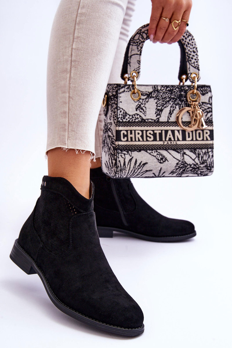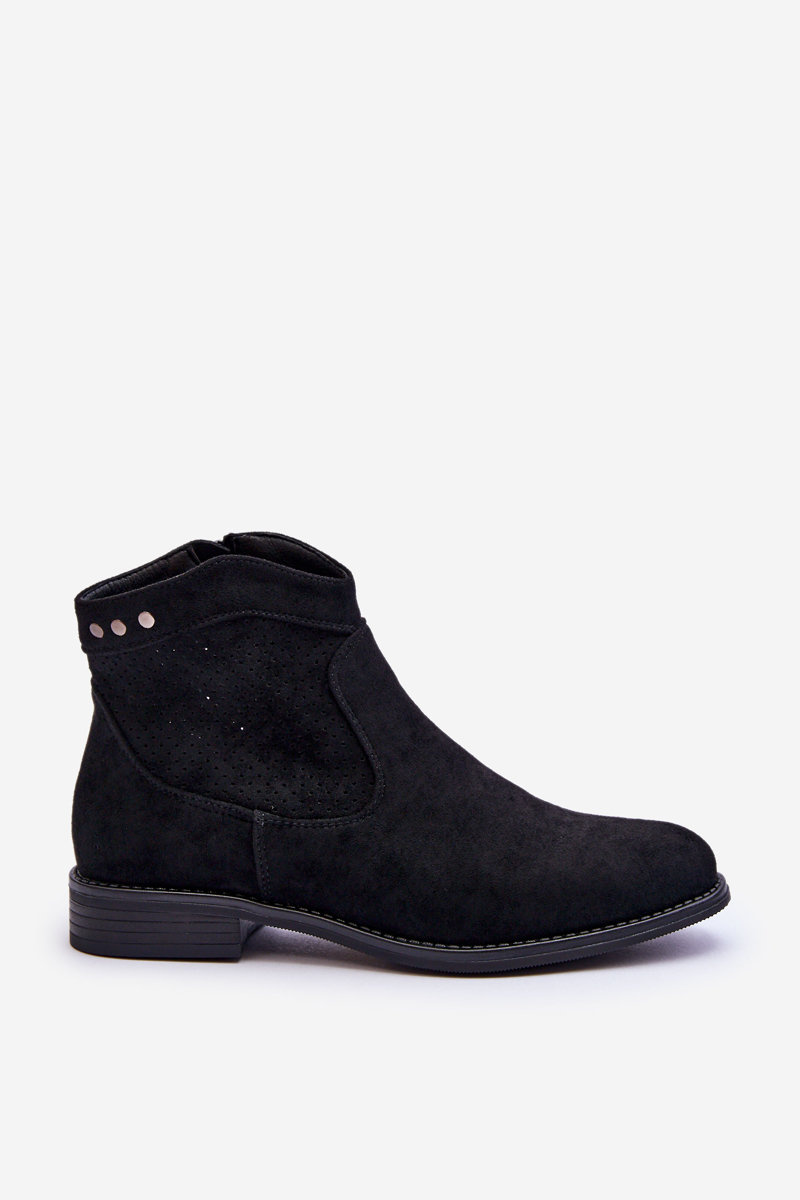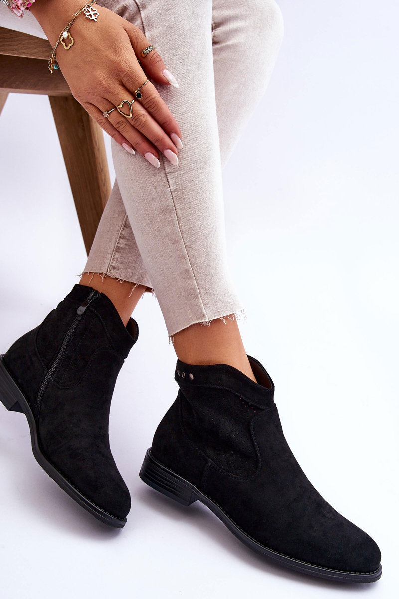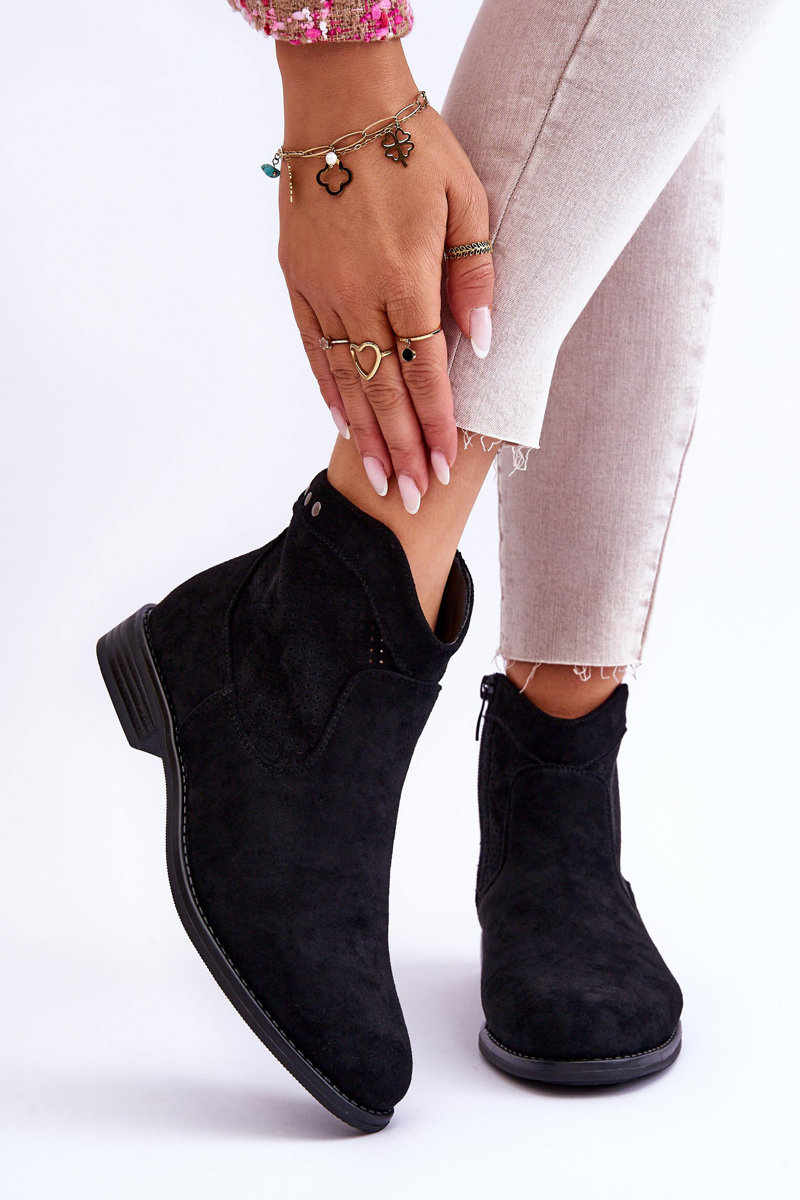 Klasické topánky vyrobené z pekného ekologického semišu s zvrškom s otvoreným dielom. Majú dekoratívne prvky vo forme cvočkov. Ploché vložené. Okrem toho majú topánky stuhnutú pätu. Na strane hornej časti je posúvač na uľahčenie inštalácie obuvi. Nezabudnite skontrolovať ďalšie modely topánok dostupných v našej ponuke! Pri výbere veľkosti navrhnite tabuľku veľkosti. p>