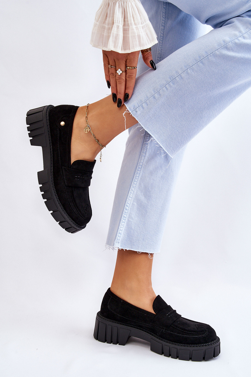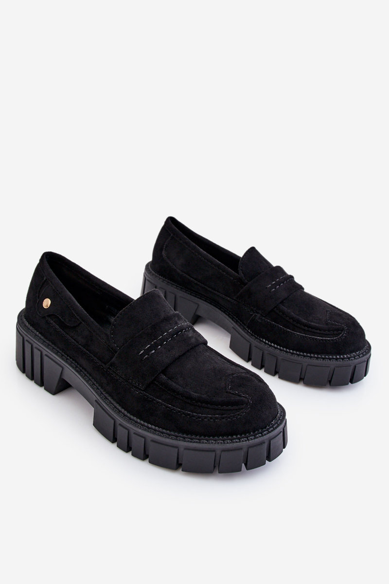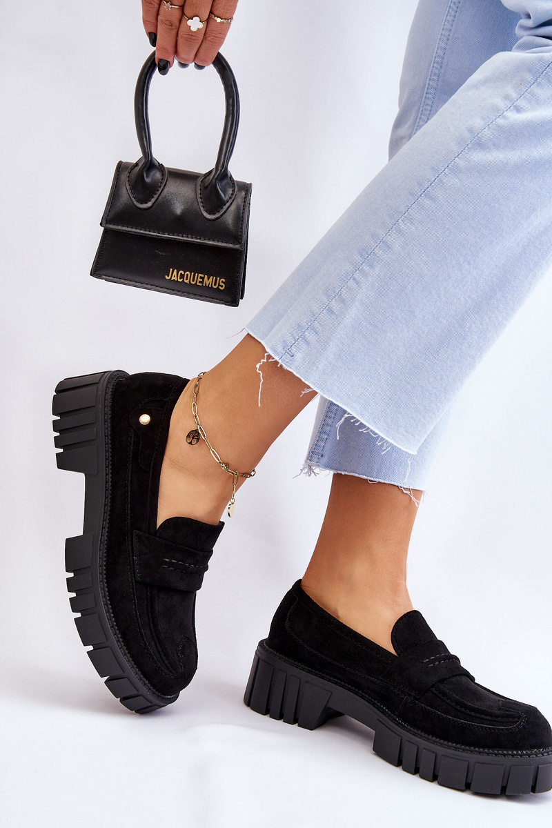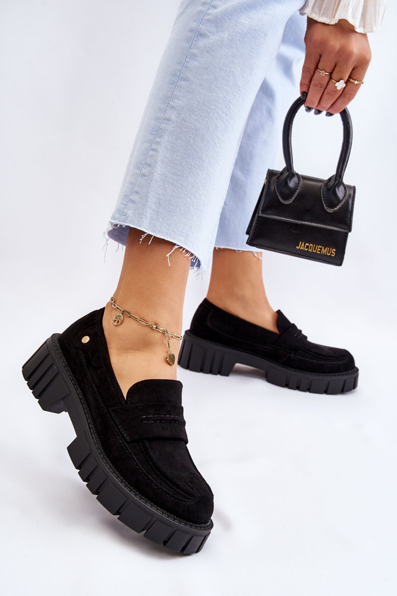 Skvelé topánky v štýle Loafer boli vyrobené z vysoko kvalitnej ekologickej kože so srdiečkami. Charakteristická dekorácia vo forme popruhu na prednej strane a nitovanie na boku hornej časti. Majú masívnu plošinu a plochú pätu. Mäkká vložka vyrobená z ekologickej kože sa pri použití obuvi postará o pohodlie. Okrem toho je päta stuhnutá. Pri výbere veľkosti navrhnite tabuľku veľkosti. p>