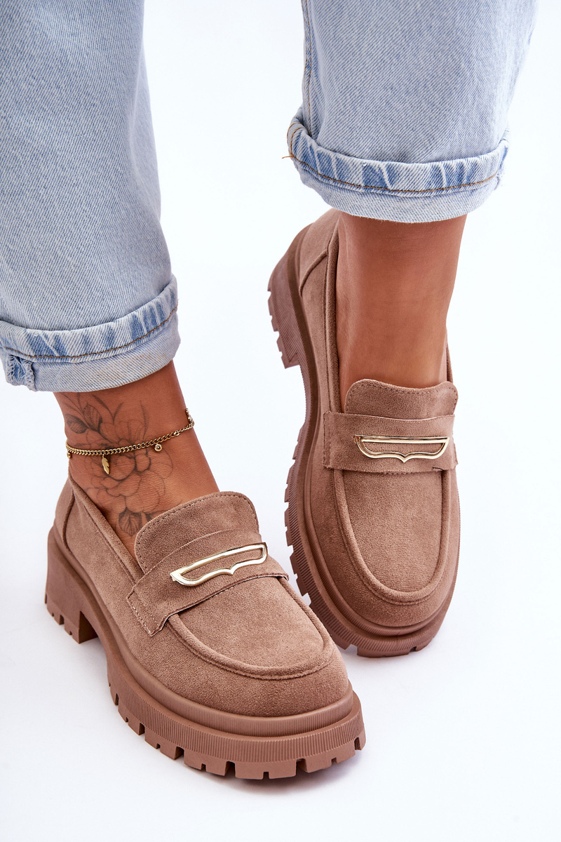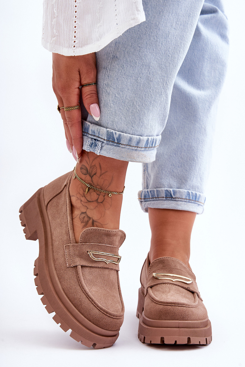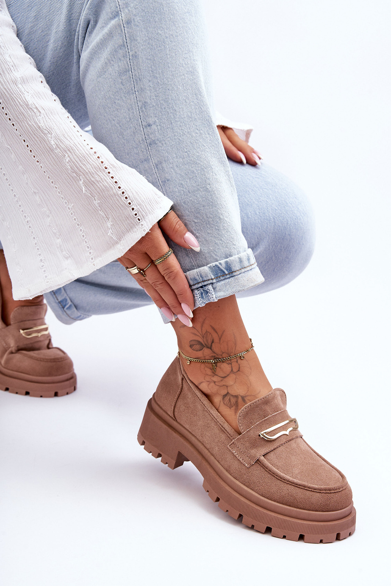 Elegantné, ženské mokasíny boli vyrobené z ekologického semišu. Boli umiestnení na masívnu plošinu a ploché podpätky. Okrem toho majú stuhnutú pätu. Mäkká vložka z ekoženého kože poskytne pohodlné použitie. Moccasíny boli zdobené na prednej tyči jemným tanierom. Tento model by mal byť vo vašom šatníku! Pri výbere veľkosti navrhnite tabuľku veľkosti.
