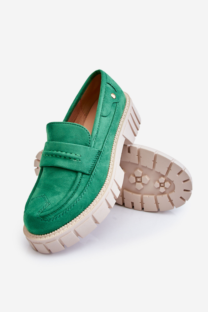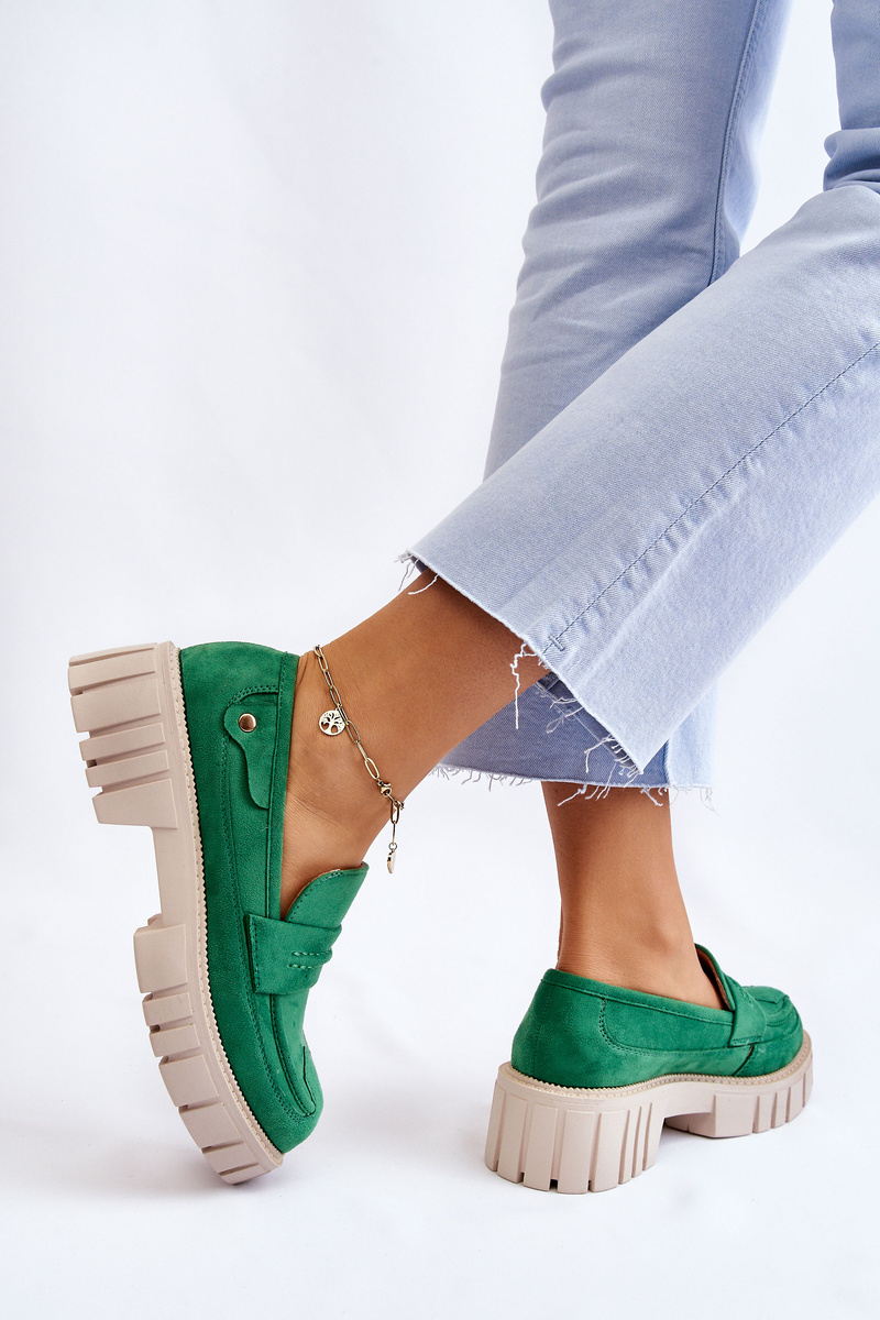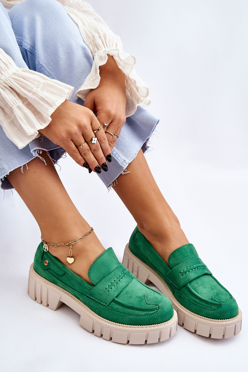 Skvelé topánky v štýle Loafer boli vyrobené z vysoko kvalitnej ekologickej kože so srdiečkami. Charakteristická dekorácia vo forme popruhu na prednej strane a nitovanie na boku hornej časti. Majú masívnu plošinu a plochú pätu. Mäkká vložka vyrobená z ekologickej kože sa pri použití obuvi postará o pohodlie. Okrem toho je päta stuhnutá. Pri výbere veľkosti navrhnite tabuľku veľkosti. p>