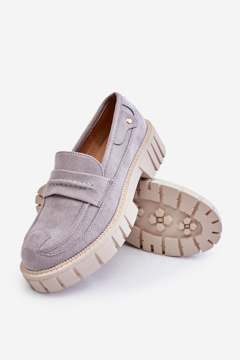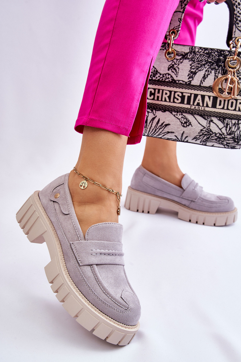 Skvelé topánky v štýle Loafer boli vyrobené z vysoko kvalitnej ekologickej kože so srdiečkami. Charakteristická dekorácia vo forme popruhu na prednej strane a nitovanie na boku hornej časti. Majú masívnu plošinu a plochú pätu. Mäkká vložka vyrobená z ekologickej kože sa pri použití obuvi postará o pohodlie. Okrem toho je päta stuhnutá. Pri výbere veľkosti navrhnite tabuľku veľkosti. p>