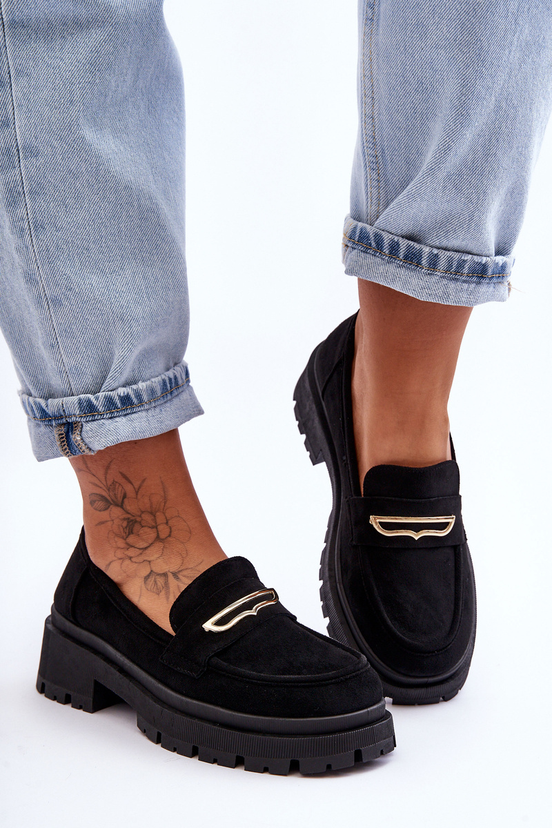 Elegantné, ženské mokasíny boli vyrobené z ekologického semišu. Boli umiestnení na masívnu plošinu a ploché podpätky. Okrem toho majú stuhnutú pätu. Mäkká vložka z ekoženého kože poskytne pohodlné použitie. Moccasíny boli zdobené na prednej tyči jemným tanierom. Tento model by mal byť vo vašom šatníku! Pri výbere veľkosti navrhnite tabuľku veľkosti.