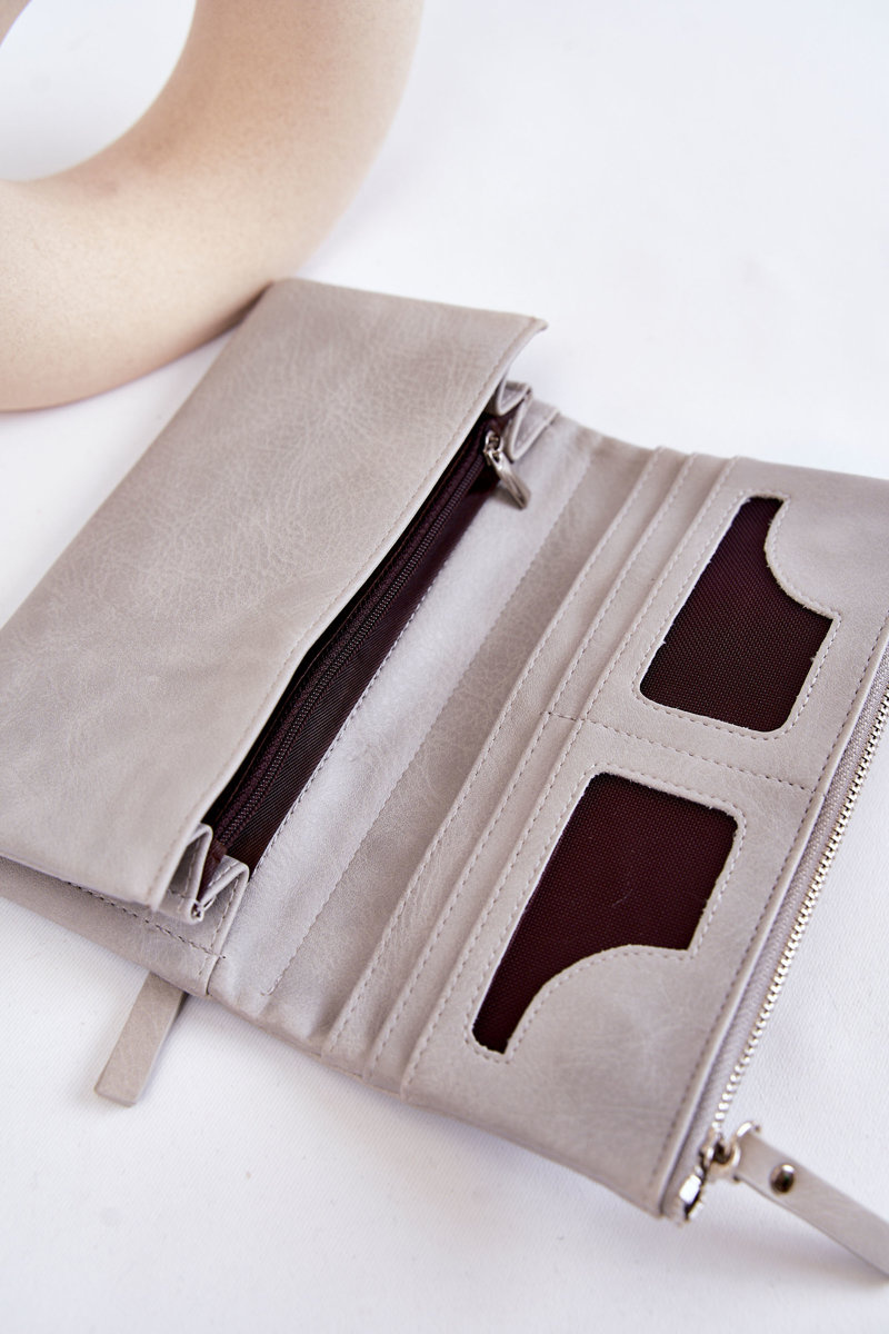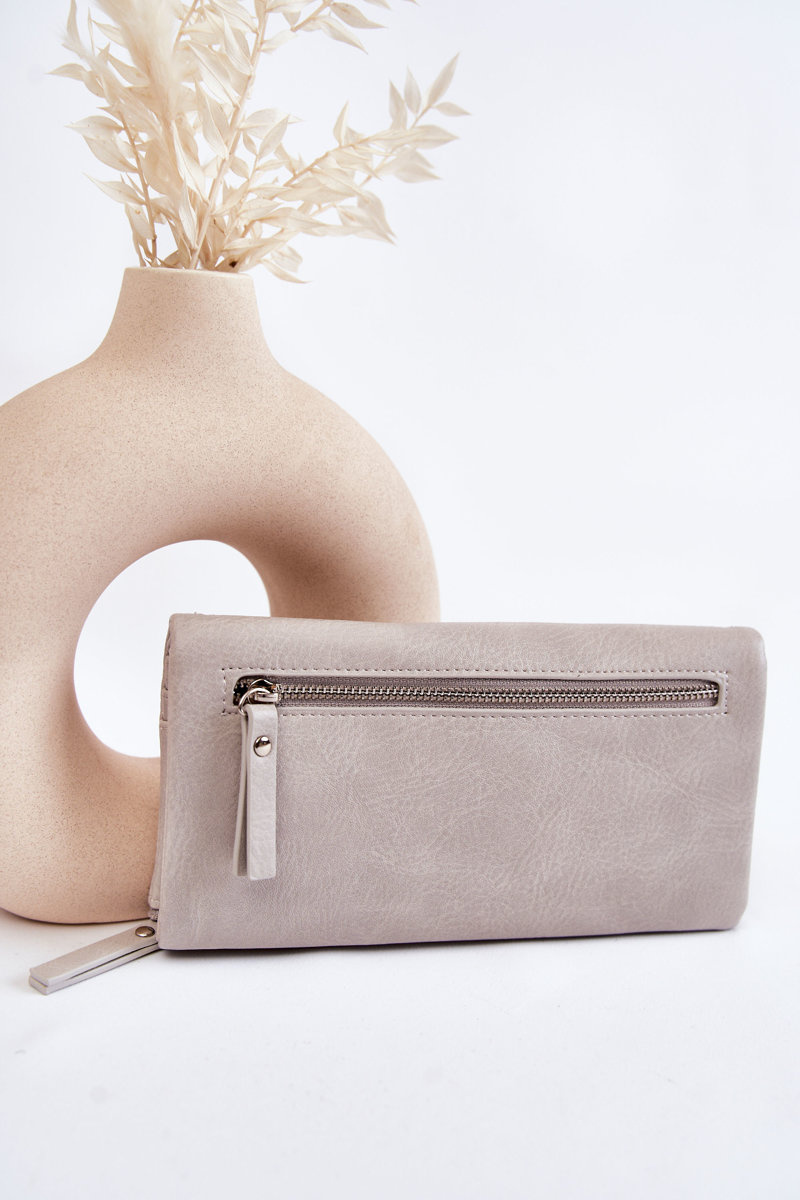 Klasická, veľká dámska peňaženka bola vyrobená z ekologickej kože. Uzavreté magnetom. Komora má otvorené vrecká a jedno uzavreté zipsom. Peňaženka navyše obsahuje priestor pre vizitky, identifikačné karty a miesto pre fotografiu. Vrecká v klapke a vzadu sú uzavreté zipsom.