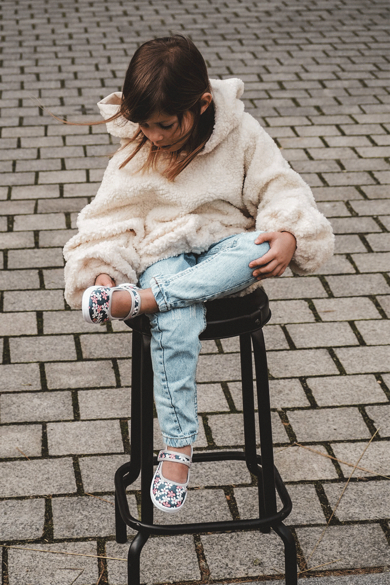 Módne, detské baleríny boli vyrobené z textilného materiálu. Tieto topánky majú klasický suchý zips. Očarujúci kvetinový model. Vložka bola vyrobená z textilného materiálu. Baleríny majú jemnú platformu. Sú skvelé ako náhrada za papiermi pre školu alebo okolo domu. Veľkosti 19-24 majú inú podrážku ako veľkosť 25-30. Pri výbere veľkosti navrhnite tabuľku veľkosti. 26-17/27-17,5/28-18/29-18,5/30-19cm