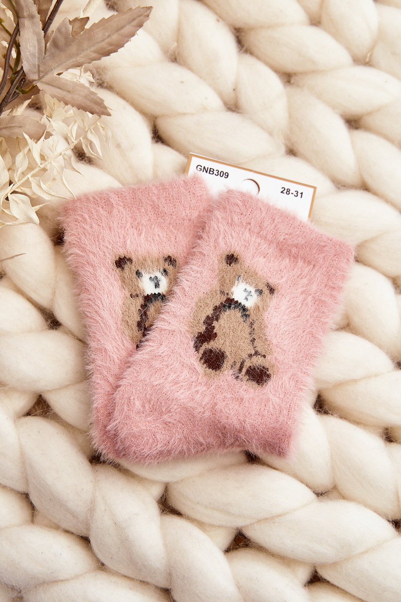 Detské Chlpaté Ponožky s Medveďom Ružové