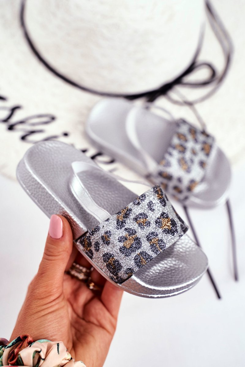 Skvelé detské flip -flops, vytvorené pre najmladších. Podrážkou je jemný gumový plast, mierne profilovaná vložka. Vď. Zdobené trblietkami so vzorom leoparda na vrchu. Pri výbere veľkosti navrhnite tabuľku veľkosti, ktorá je k dispozícii po vznášaní alebo kliknutí na danú veľkosť.