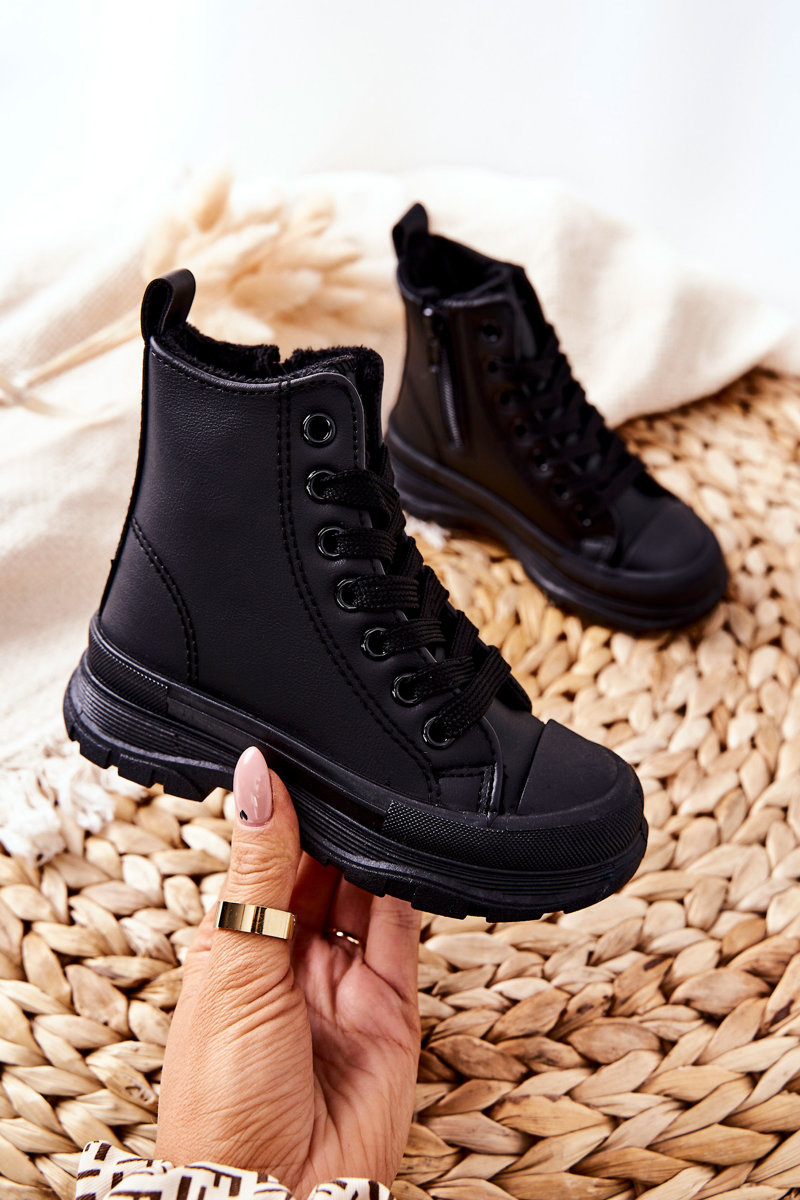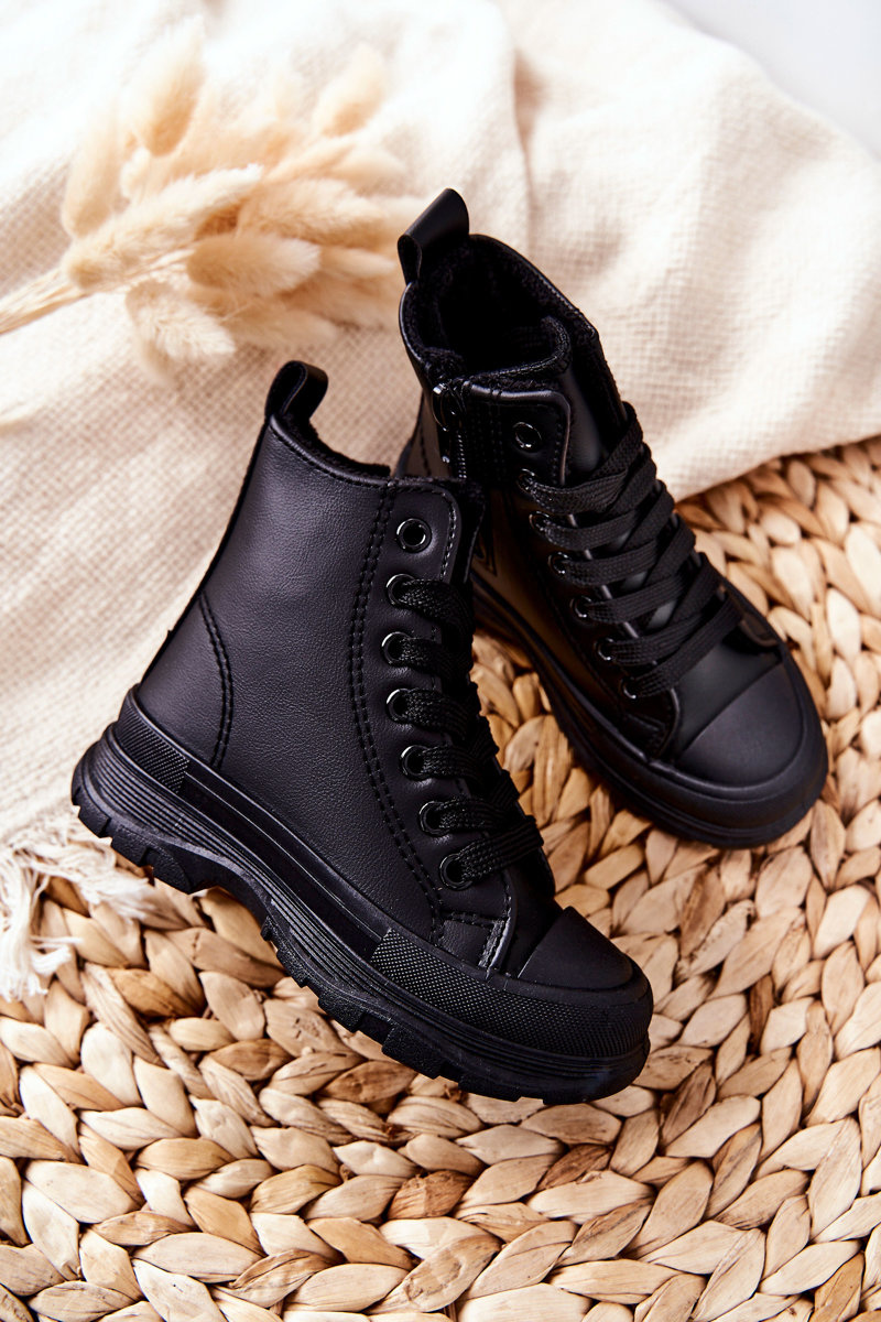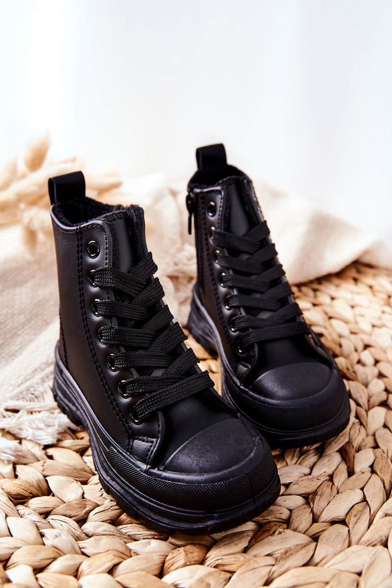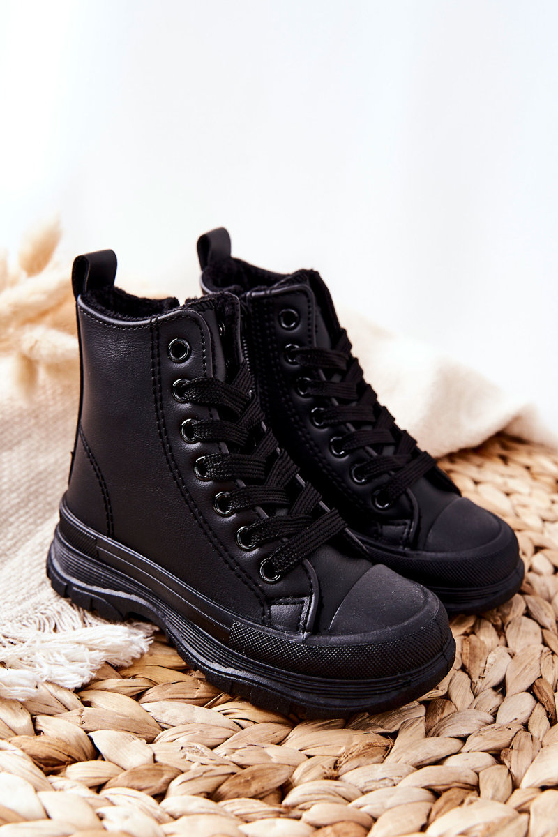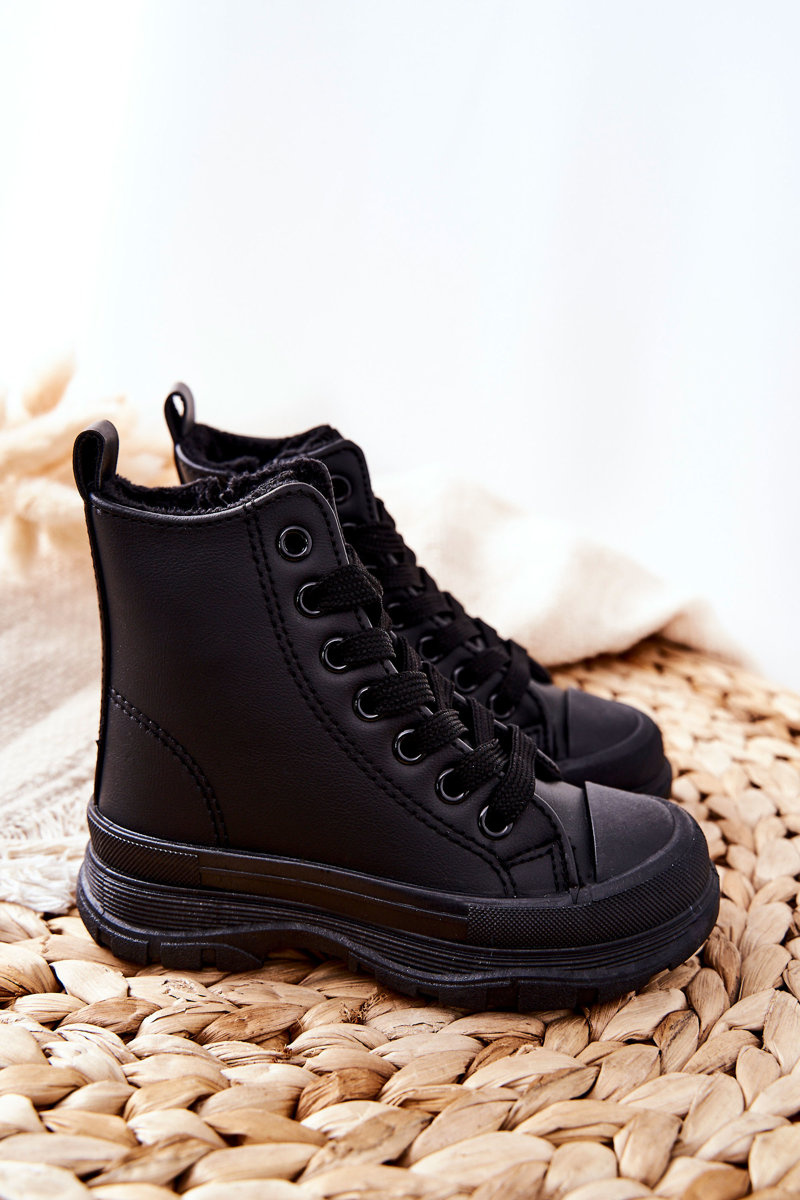 Detské kožené izolované tenisky čierne bomi
