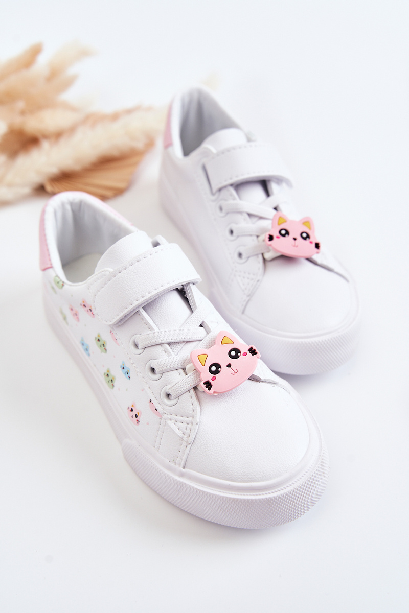 Detské kožené tenisky na suchý zips s potlačou bielej bonnie