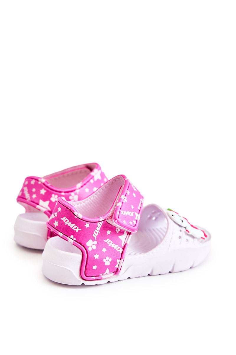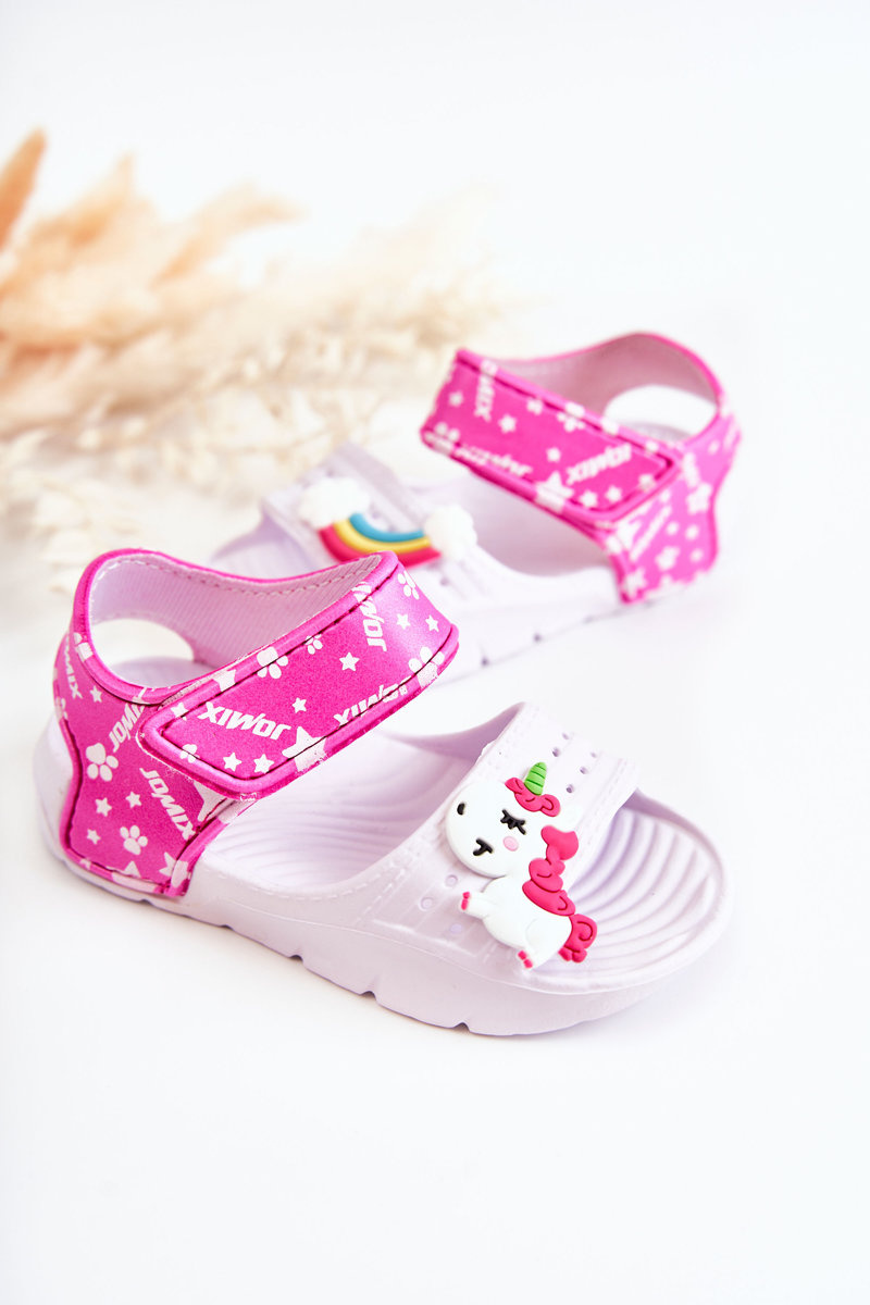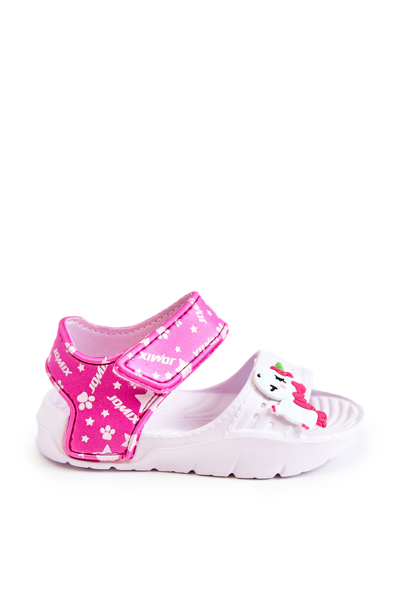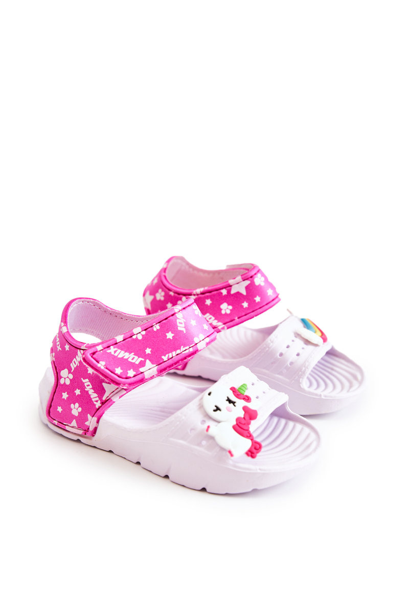 Extrémne ľahké detské sandále s otvoreným, okrúhlym nosom a otvorenou pätou. Vyrobené z penového plastu, ktorý zaručuje pohodlie počas dlhých prechádzok. Pripevnené pomocou suchého zipsu na členku. Farebné dekorácie na prednej strane boli vyrobené z gumového plastu. Nezabudnite skontrolovať celú našu kolekciu detských sandálov! Pri výbere veľkosti navrhnite tabuľku veľkosti.
