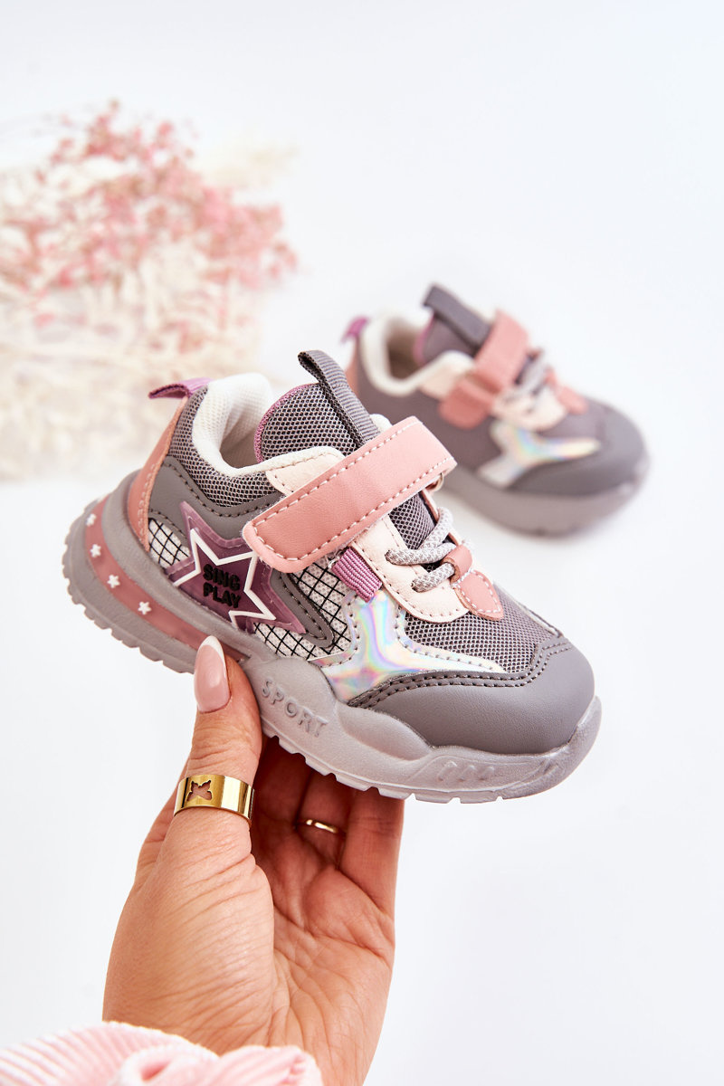 Detské športové topánky vyrobené z textilného materiálu a ekologickej kože. Pripevnené suchým zipsom spolu s elastikami napodobňujúcimi šnúrkami. Topánky majú mäkkú profilovanú vložku vyrobenú z prírodnej kože. Model je extrémne ľahký, čo veľmi dobre ovplyvňuje pohodlie používania. Dekoratívny gumový znak na boku hornej časti. Stužnená obuv na špičke. Mimoriadne pohodlné a módne športové topánky pre vaše dieťa! Nečakajte a kúpte si ešte dnes! Pri výbere veľkosti navrhnite tabuľku veľkosti.