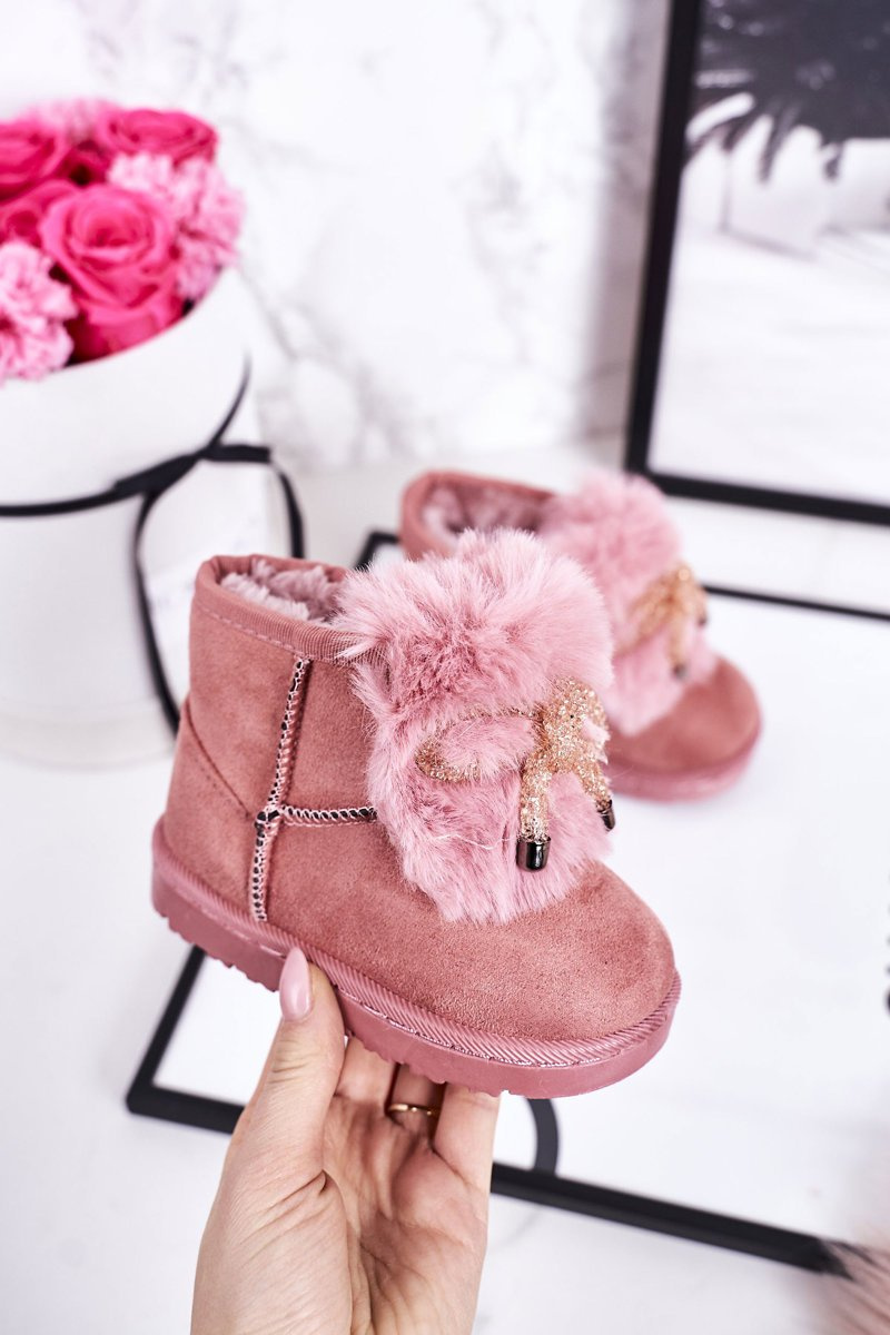 Detské snehové topánky izolované cheede kožušinovou ružovou ameliou