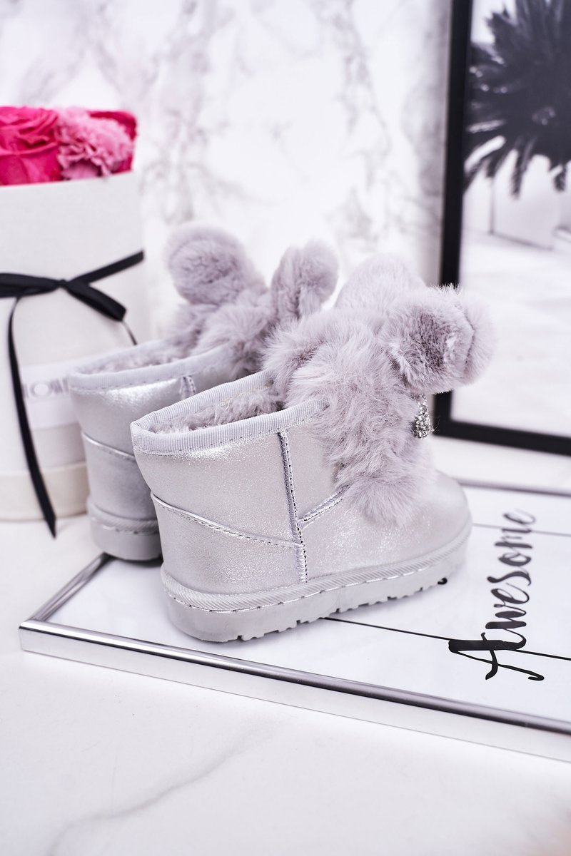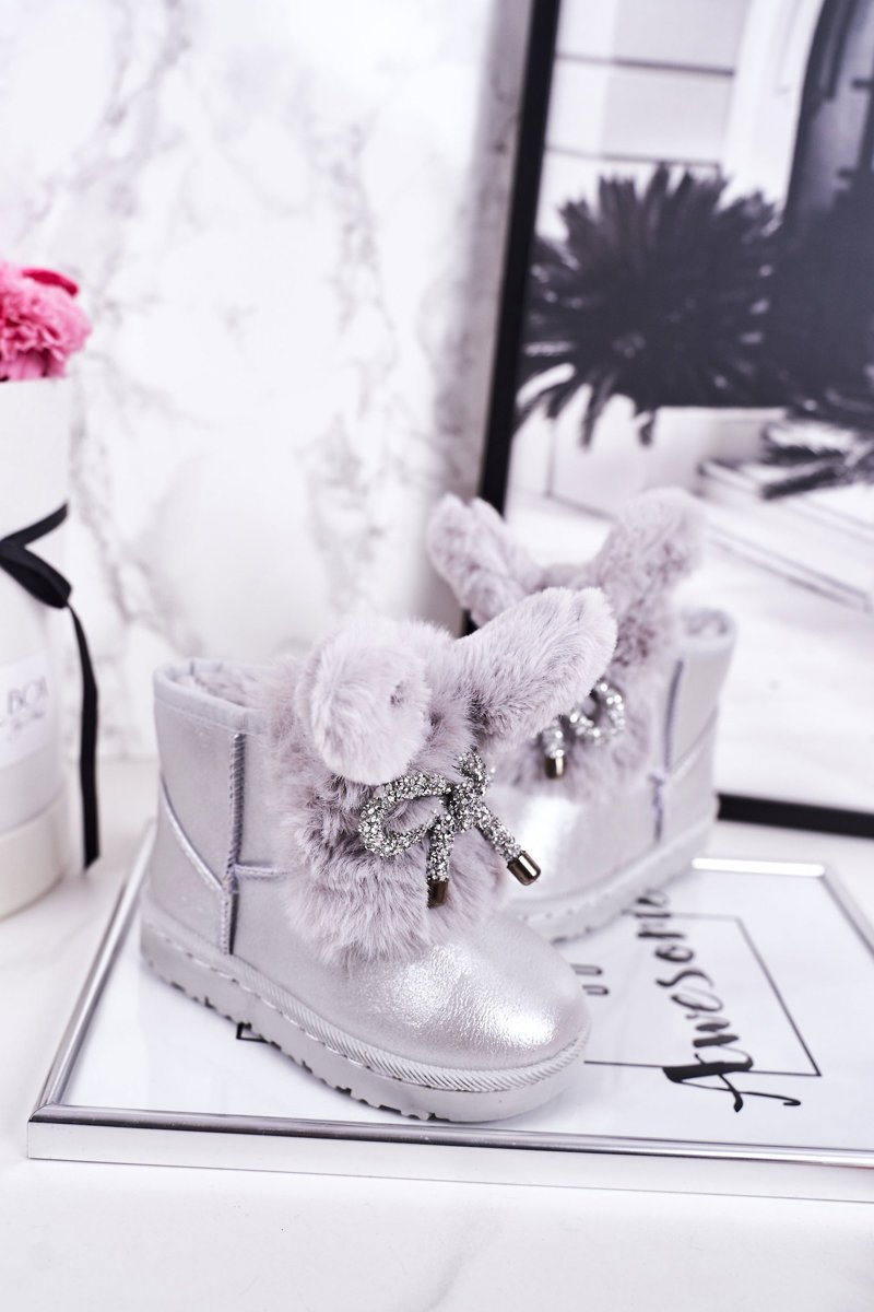Towar wprowadzony przed 13.12.2024Tak Detské snehové topánky izolované kožušinou so striebornými zajačikmi