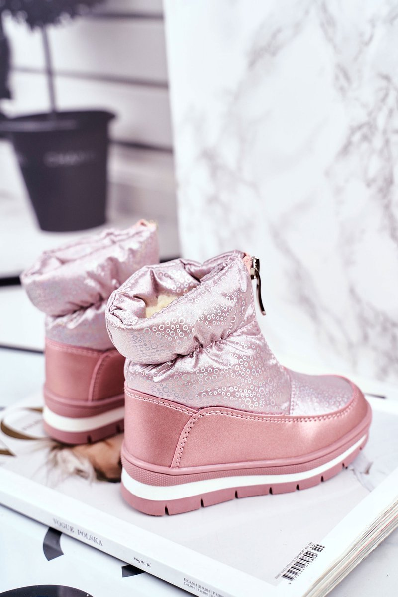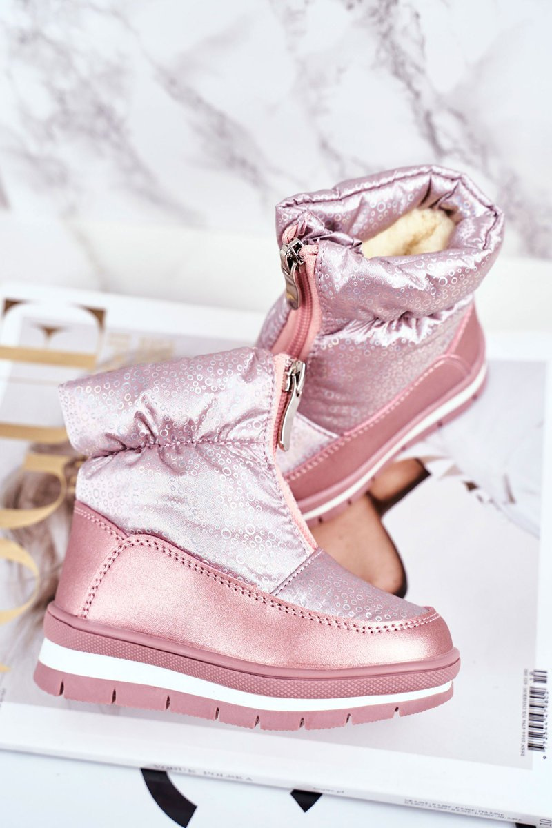 Detské snehové topánky izolované ružovými vlnenými bublinkami