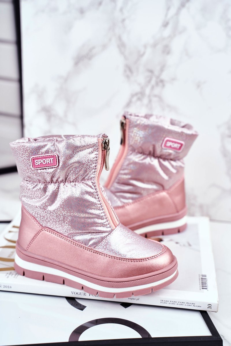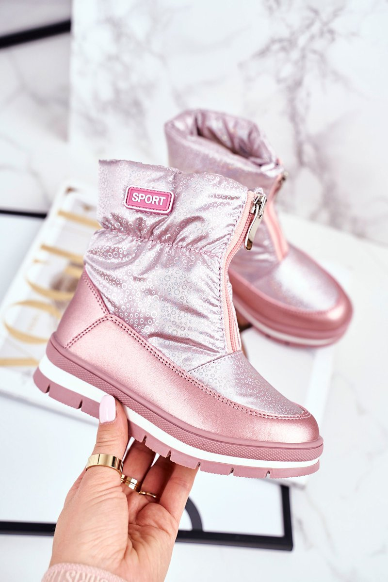Detské snehové topánky izolované ružovými vlnenými bublinkami