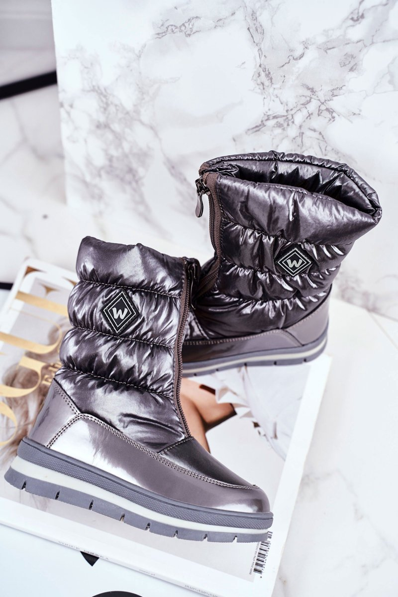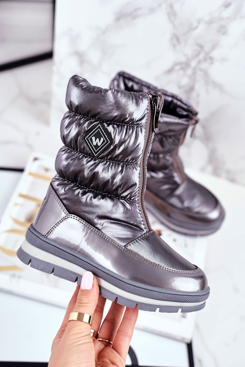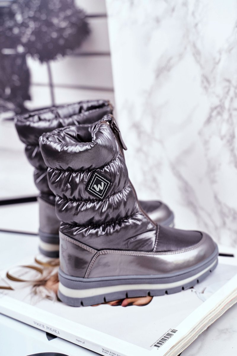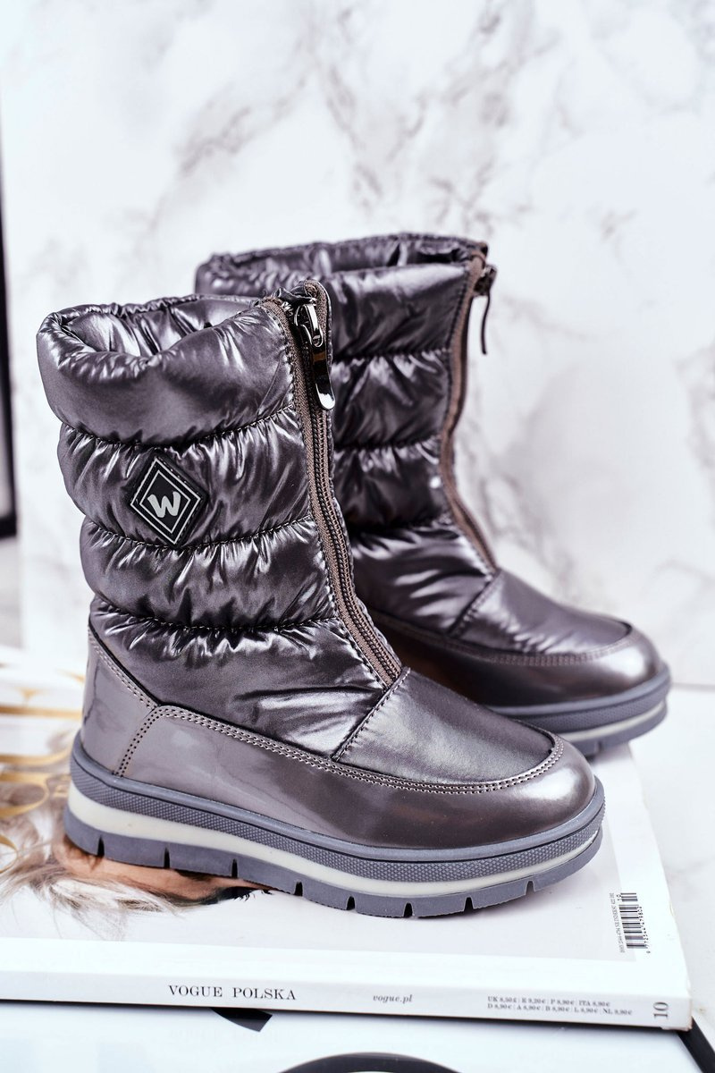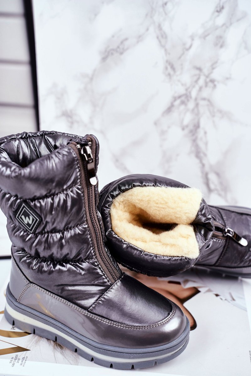 Detské snehové topánky izolované vlnou tmavo šedou mamou