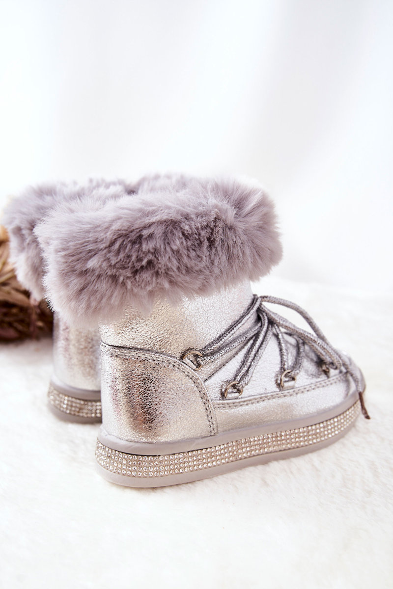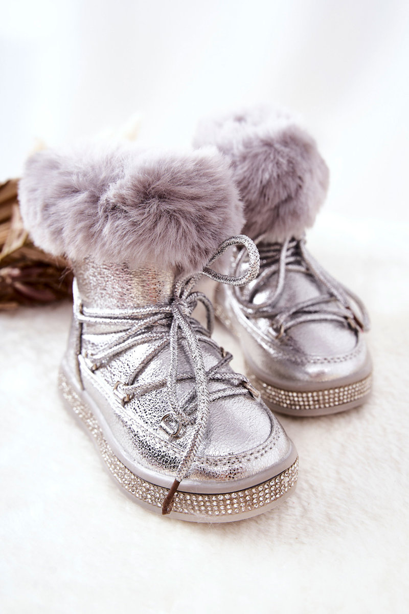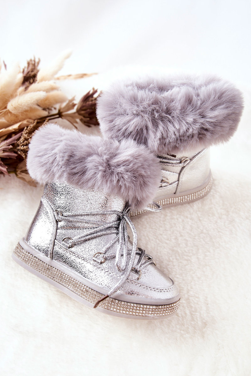 Detské snehové topánky so striebornou granis kožušinou