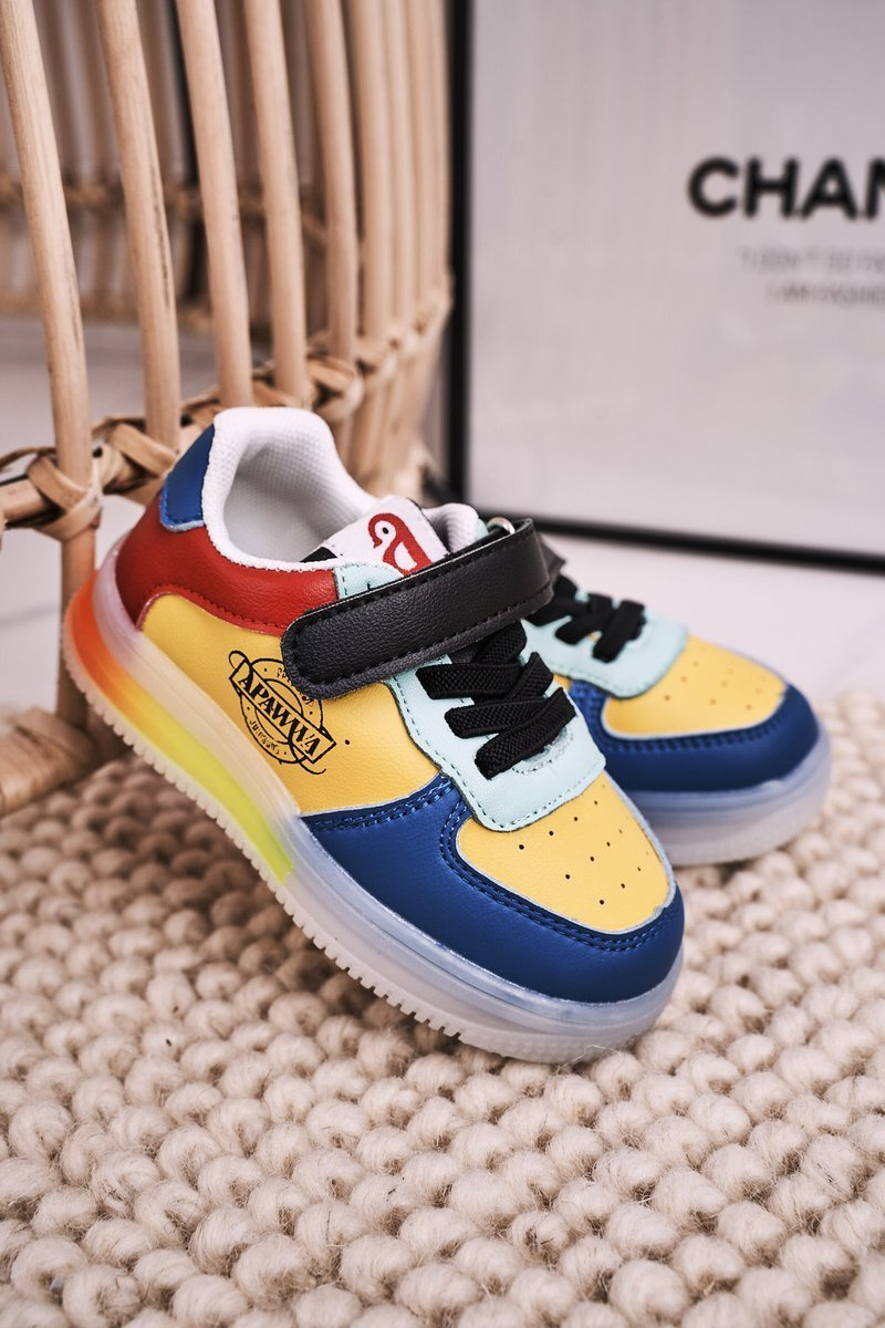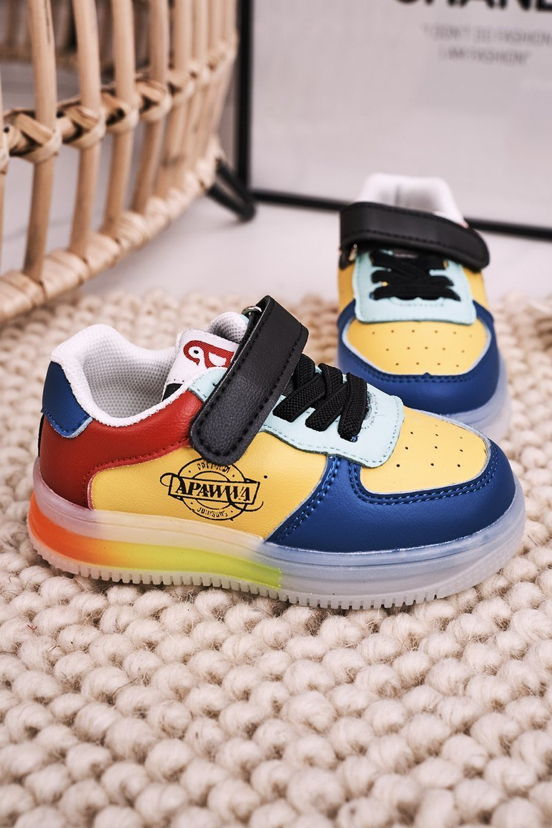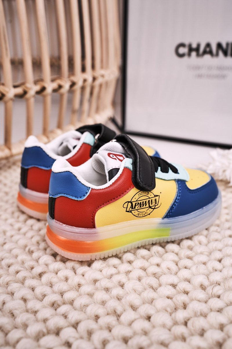 Detské športové topánky pripevnené suchým zipsom. Topánky majú priehľadnú podrážku so zabudovanými LED svetlami. Topánky sú vyrobené z vysoko kvalitnej ekologickej kože. Majú mäkkú koženú vložku. Nezabudnite skontrolovať celú našu zbierku detských topánok. Pri výbere veľkosti navrhnite tabuľku veľkosti.