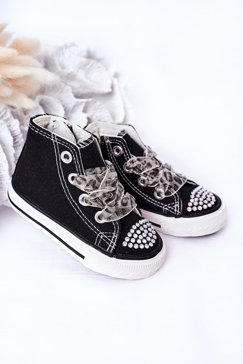 Detské tenisky s čiernym úsmevom so zirkónmi