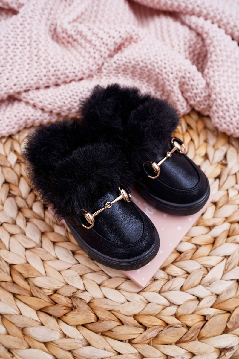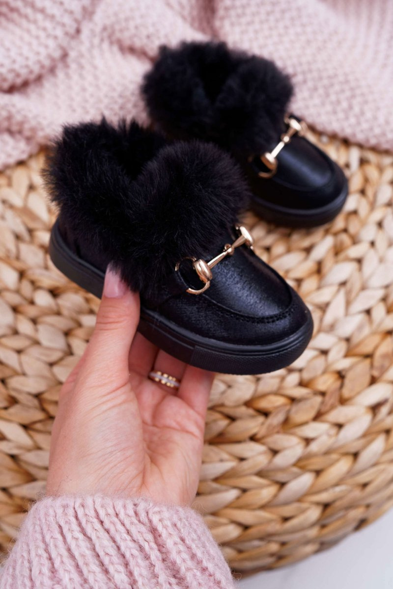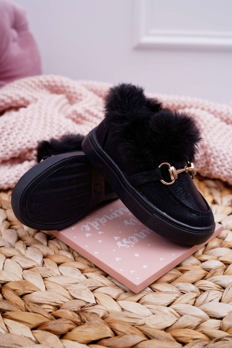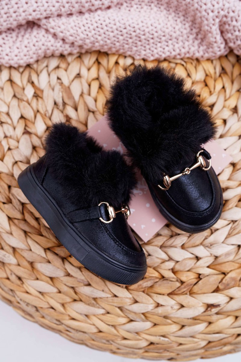 Detské tenisky s kožušinou izolovanou čiernou farbou