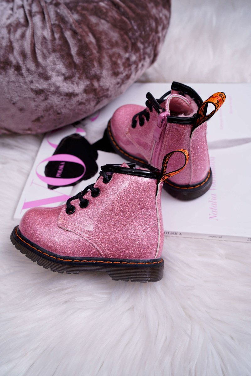 Detské topánky izolované s posúvanou lakovanou ružovou trblietavou mistorom