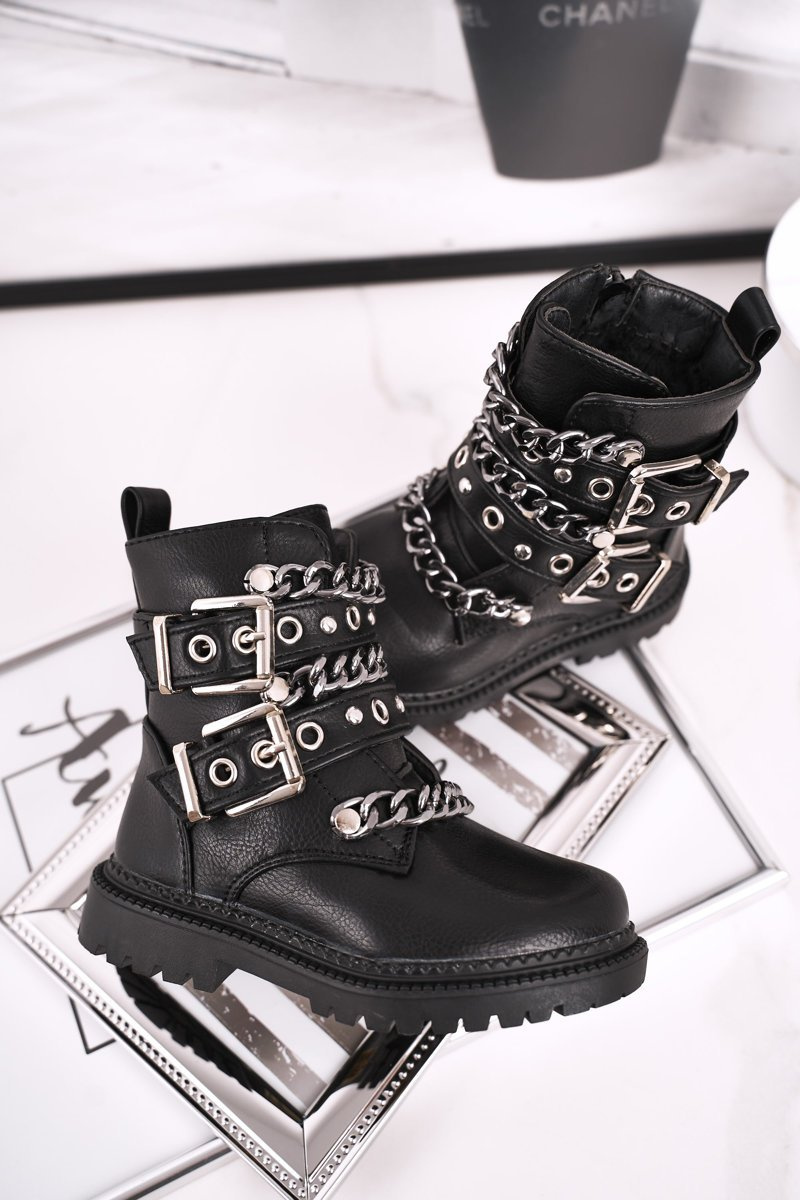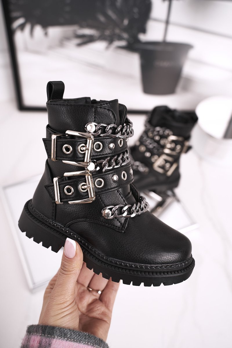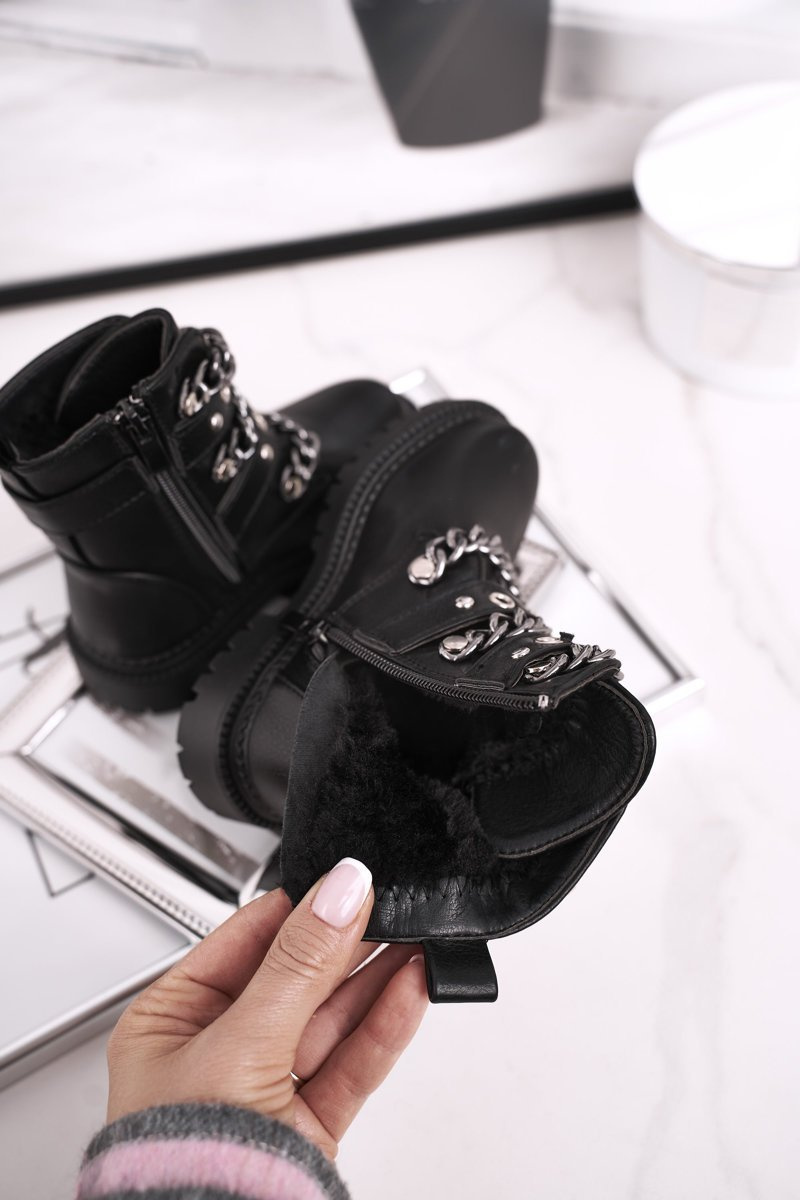 Zbierka topánok našich detí neustále rastie! Tentokrát pre vás máme tieto úžasné topánky v trochu silnejšej verzii - pracky a strieborné reťaze, nemôžete z nich zložiť oči! Interiér topánok bol izolovaný hustou a príjemnou kožušinou. Uvedenie uľahčí posuvný posúvač na boku. Pri výbere veľkosti nasmerujte tabuľku veľkosti.
