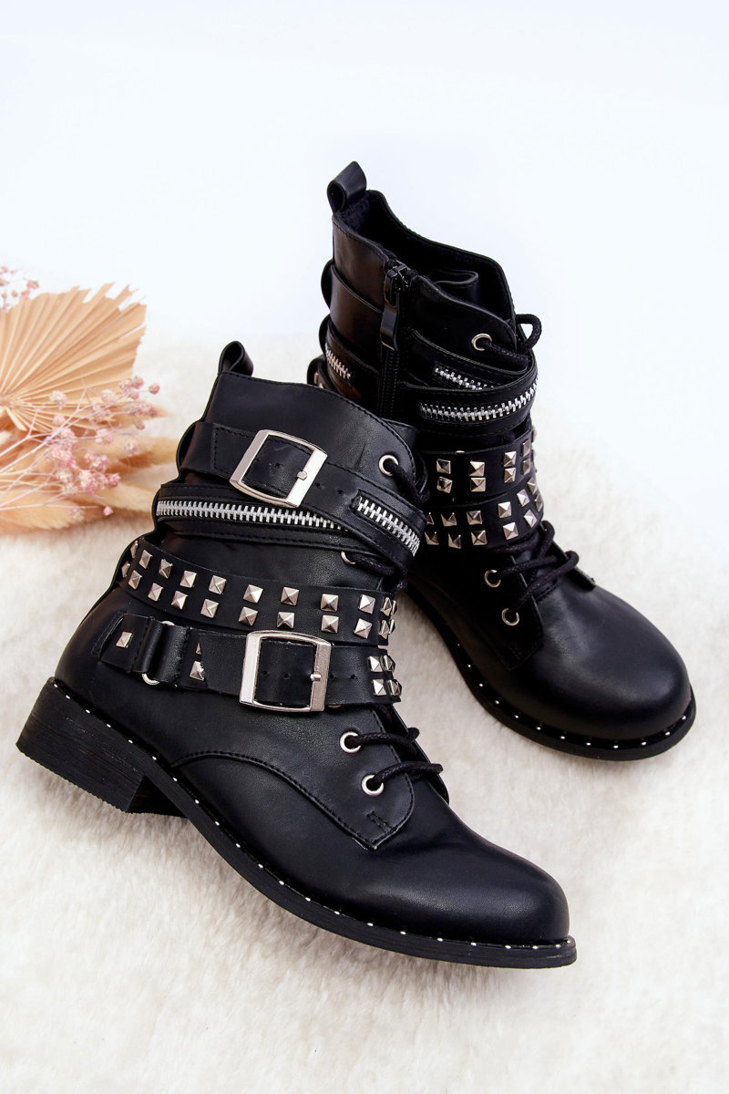 Zdá sa, že vás už nič neprekvapuje, a napriek tomu! Naša zbierka nikdy neprestane prekvapiť. Teraz sú k dispozícii ďalšie nádherné topánky s bytmi v rockovom štýle! Čierna farba vám umožní zvoliť si možnosť výberu štýlu. Okrem farby, ktorá sa zmestí do všetkých trendov, sú topánky zdobené svorkami a umelými napodobňovaním zámku. Agresívna, rocková postava vďaka cvkom! Stavte sa na štýl, nasaďte na lu boo!