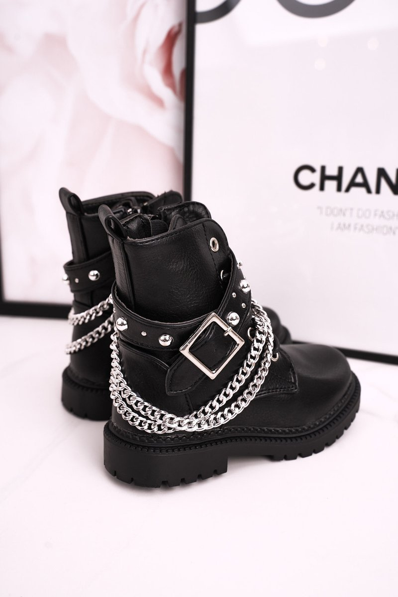 Počas chladných dní sa oplatí postarať sa o teplú obuv pre naše deti. Jedným z návrhov sú tieto módne topánky izolované eko -kožušinou. Čižmy sú vyrobené z ekologickej kože, zdobené striebornou reťazou a kamienkami. Nezabudnite sa pozrieť na celú našu ponuku detských topánok. Pri výbere veľkosti nasmerujte tabuľku veľkosti.