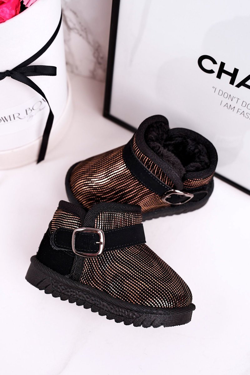 Detské topánky Snehové topánky s kožušinovým zlatom čierne zasnené