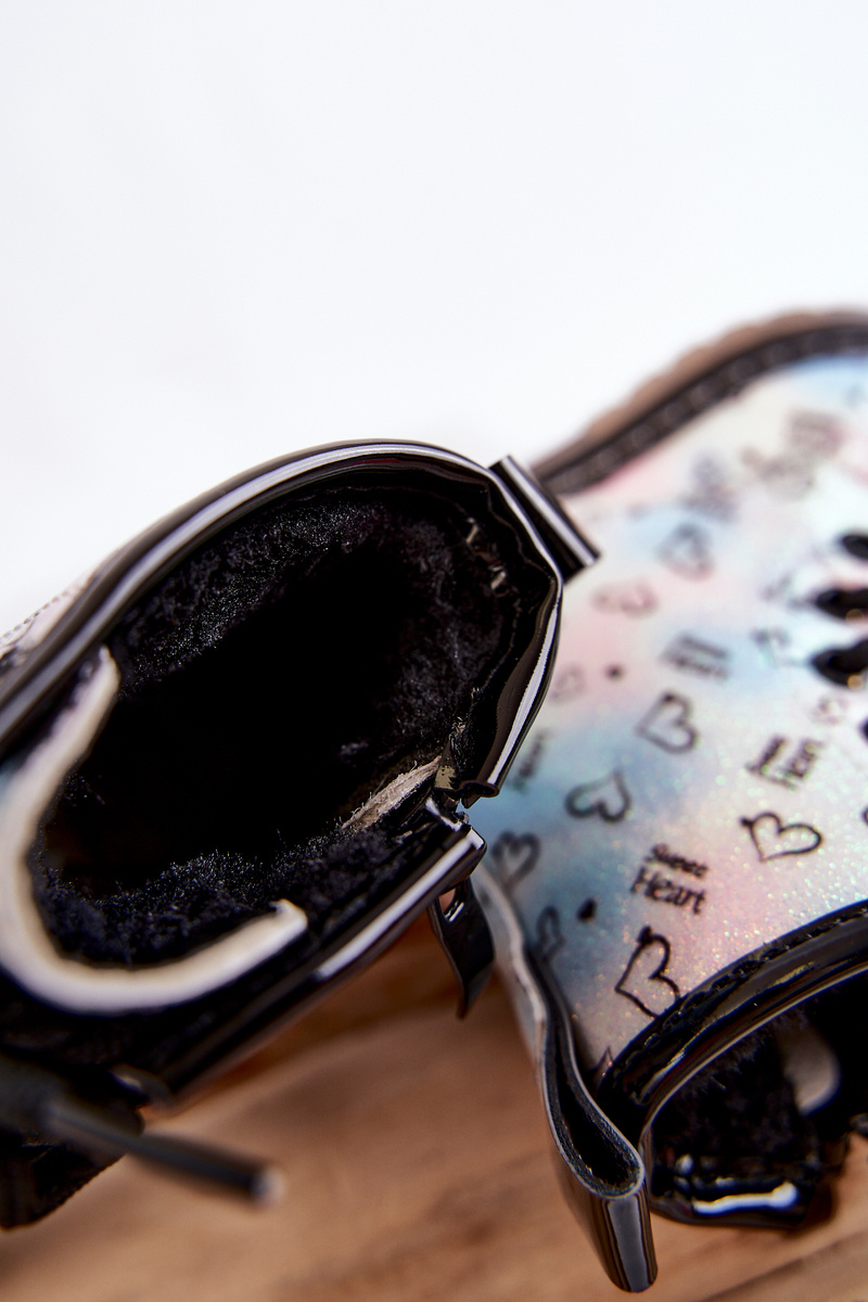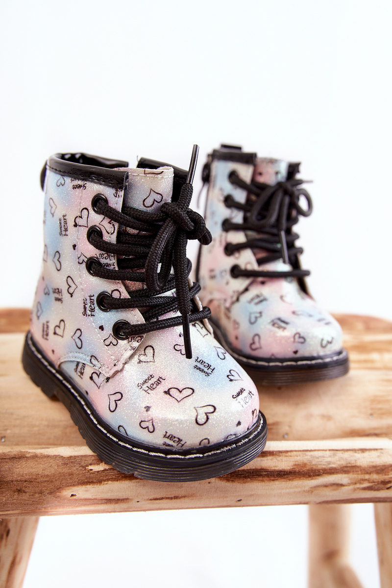 Krásne, dievčenské topánky boli vyrobené z ekologickej kože do módneho vzoru. Okrem toho boli zdobené brokátom. Topánky majú posúvač na boku hornej a klasickej šnurovania. Ploché topánky a platforma s podrážkou. Okrem toho je orezaný vláknom. Vo vnútri boli izolované prikrývkou obuvi. Skvelý model pre vaše dieťa! Pri výbere veľkosti nasmerujte tabuľku veľkosti. /25-15/26-15.5/27-16/28-17/29-18/30-18.5cm