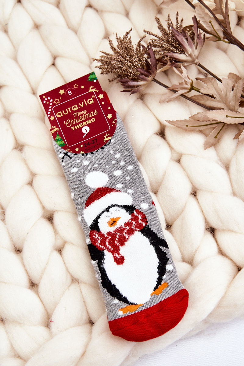 Detské vianočné bavlnené ponožky termoaktívne sivé tučniaky