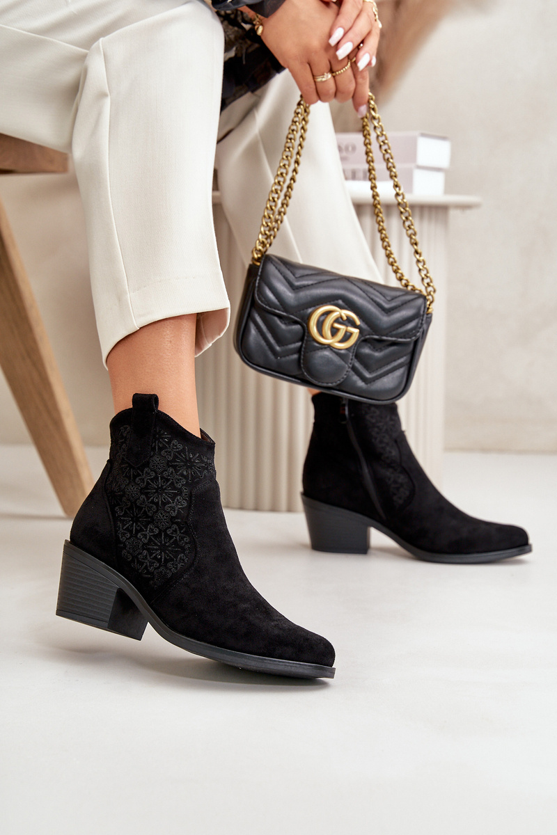 Dierované Kovbojské Čižmy Na Zips Eko Semišové Čierne S.Barski HY42-944
