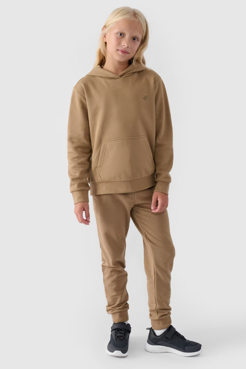 Dievčenská Nezipsová Mikina S Kapucňou Hladká Béžová 4F 4FJWMM00TSWSF1316-83S