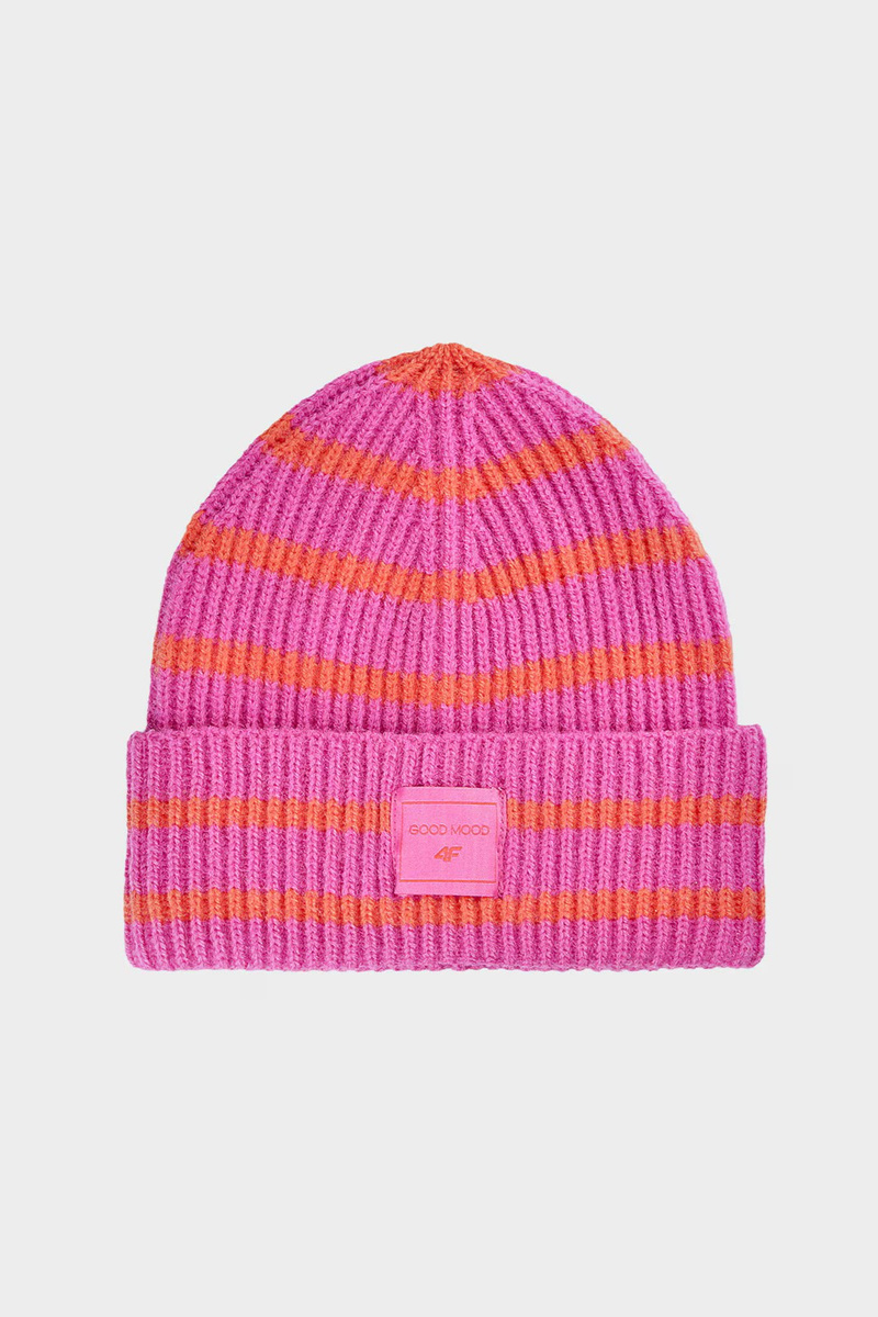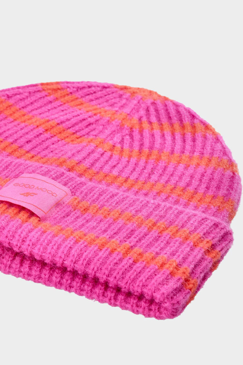 Dievčenská zimná čiapka s prúžkami Fuchsie 4F 4FJWAW24ACAPF417-55S
