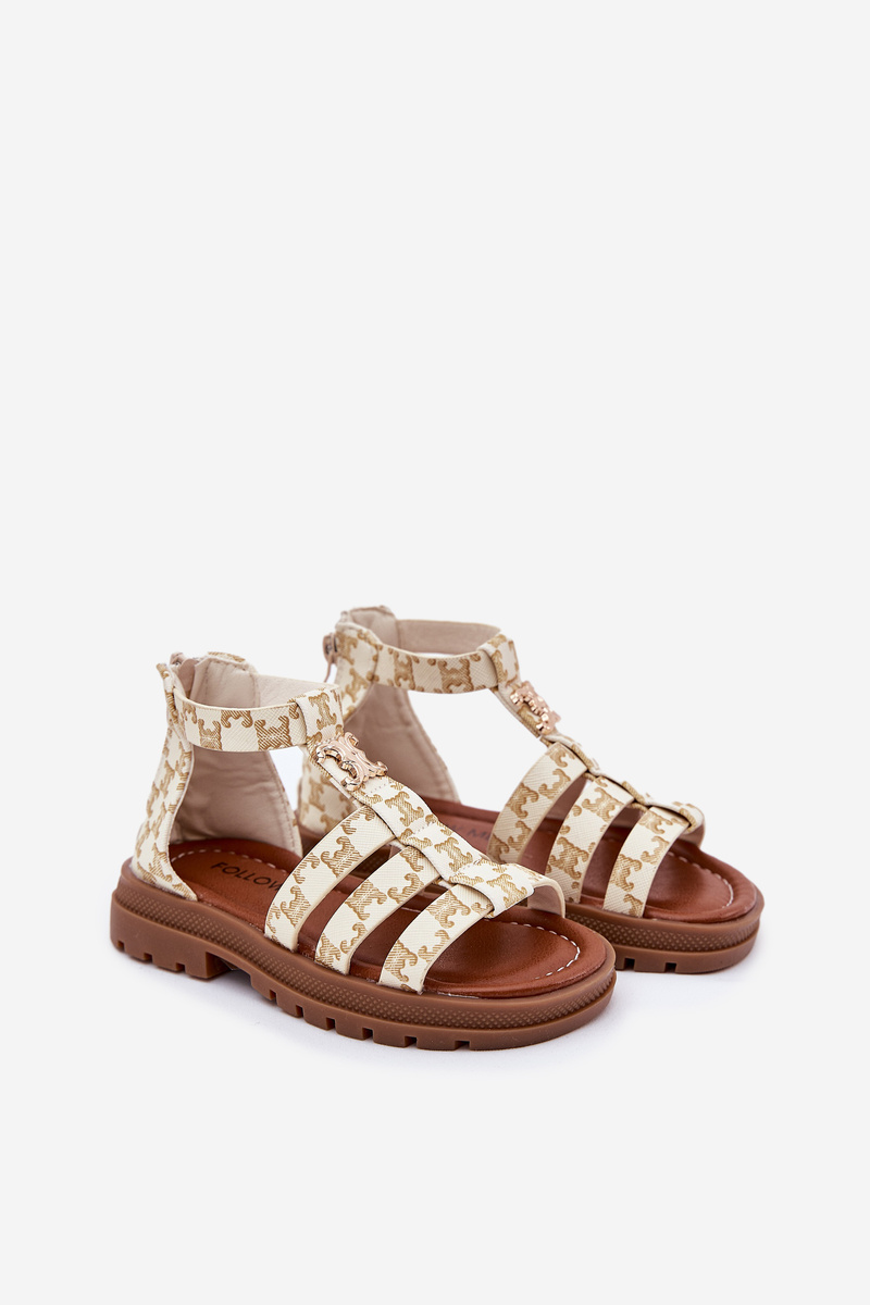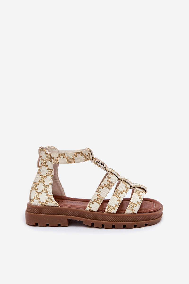 Dievčenské gladiátorské sandále so zlatým detailom béžové Vesira
