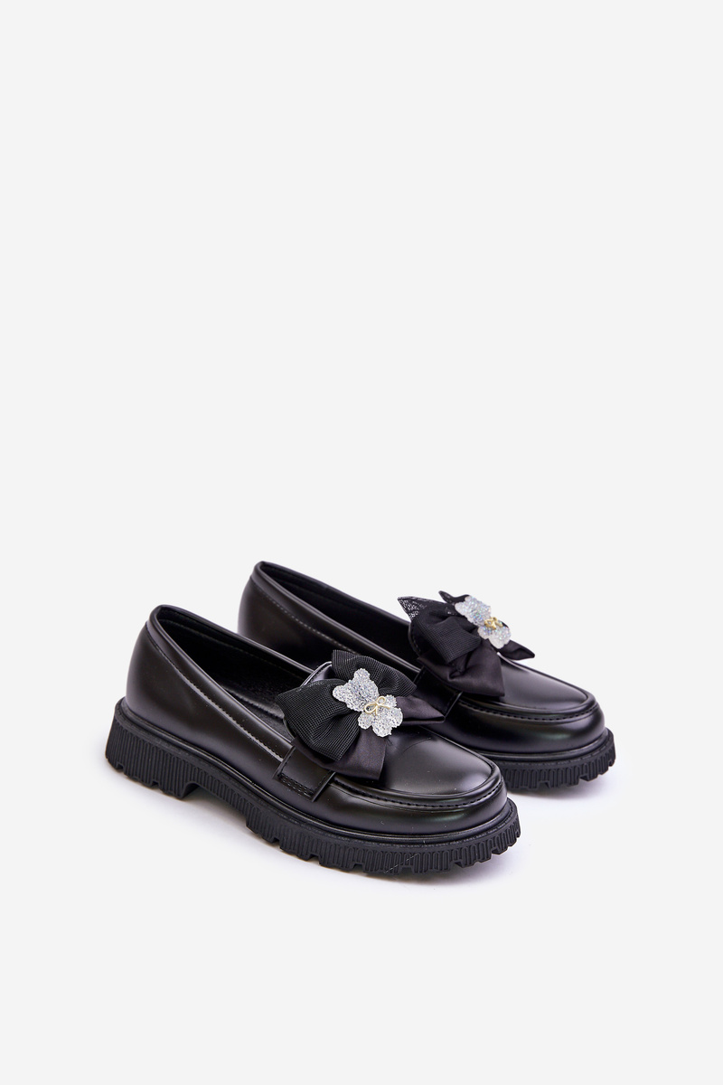 Dievčenské Mokasíny S Mašľou Eko Koža Čierne Avallesa