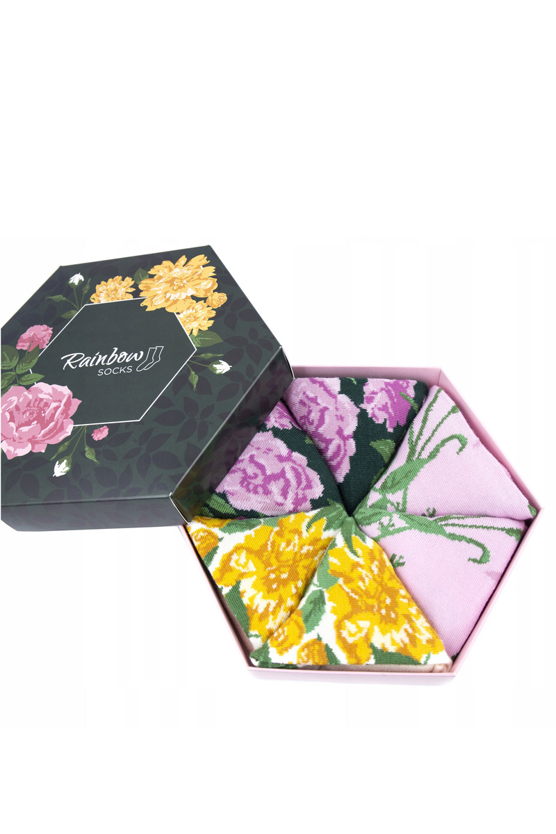 Dúhové ponožky ponožky s kvetmi ruže ruže peonie púčiky 3 páry