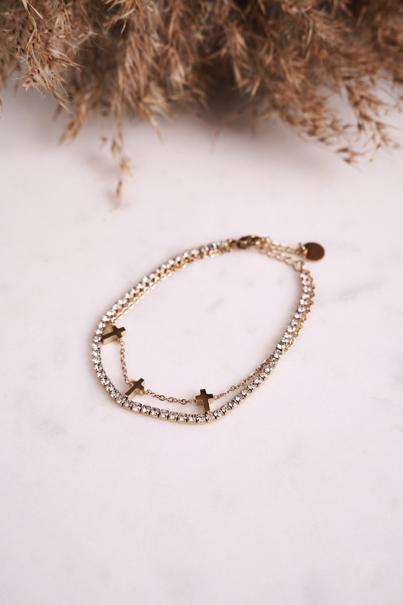 Dvojitý náramok s krížmi a zirkónmi zlata Irene