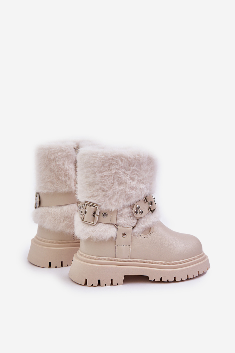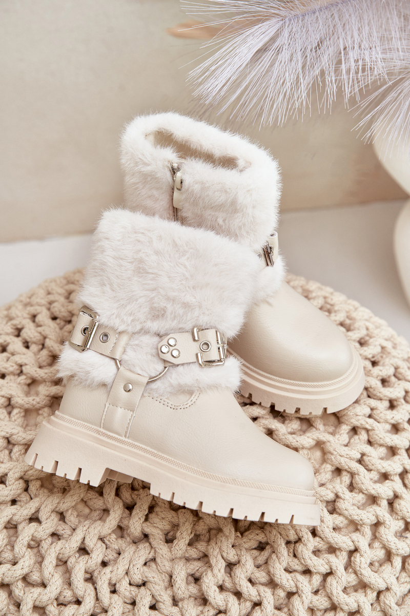 Eko Kožené Dievčenské Topánky S Kožušinou A Prackami Béžové Cartemes