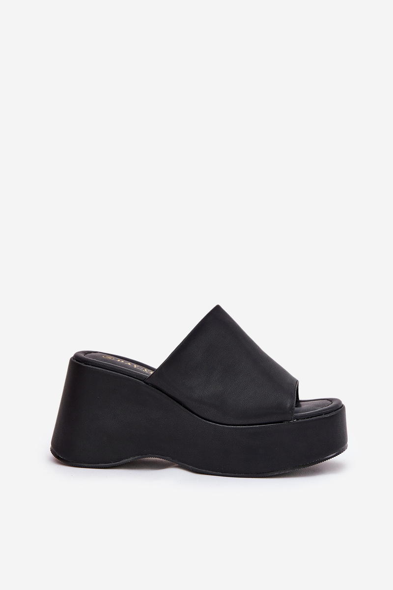 Eko Kožené Sandále Dámske Na Platforme A Opätku Čierne Kisoffi