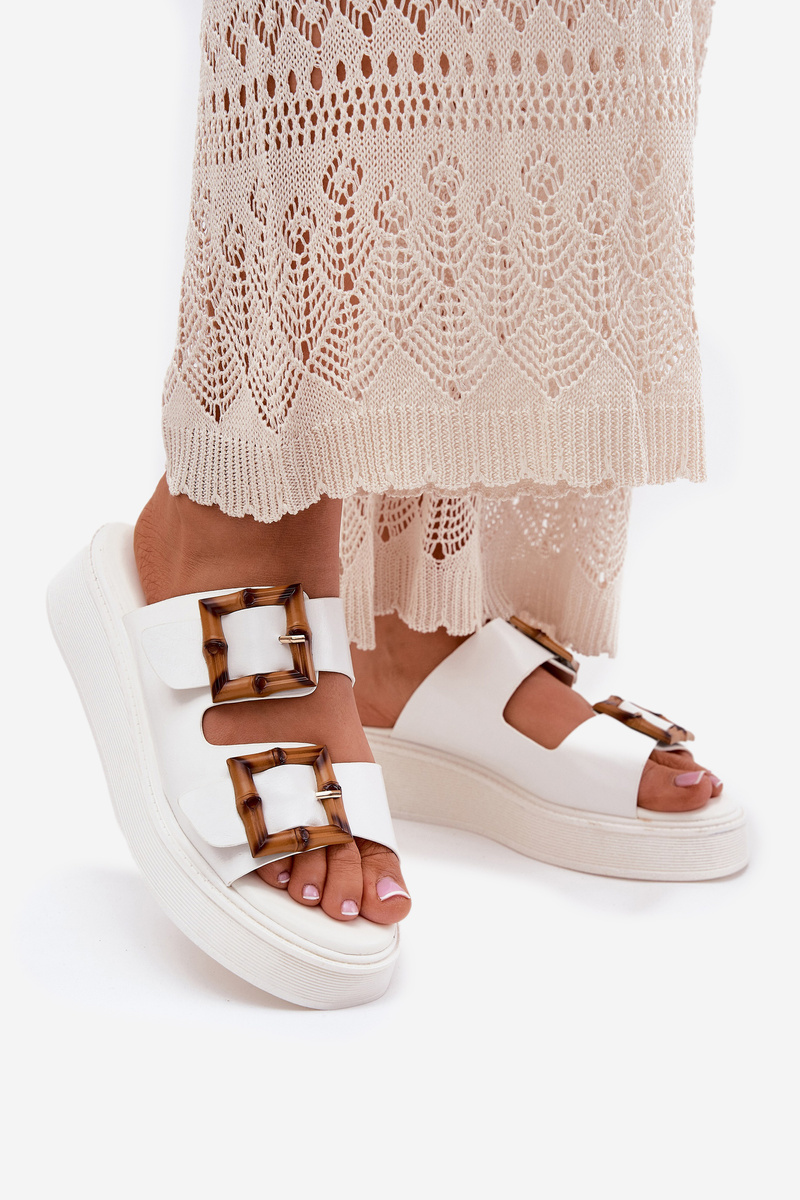 Eko Kožené Sandále Dámske Na Platforme S Prackami Biele Xanivia