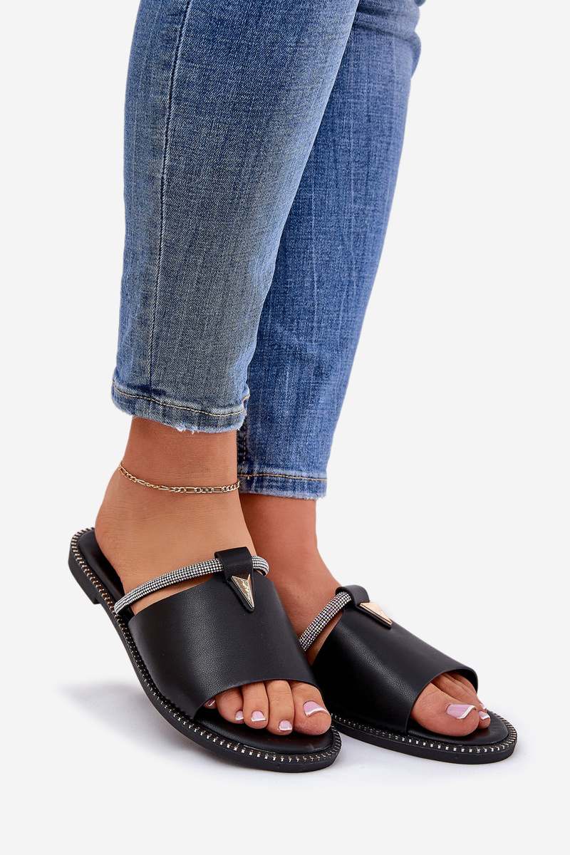Eko Kožené Šľapky Na Plochosť S Dekoratívnym Pásom Čierne Hirtewi