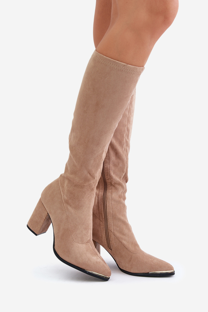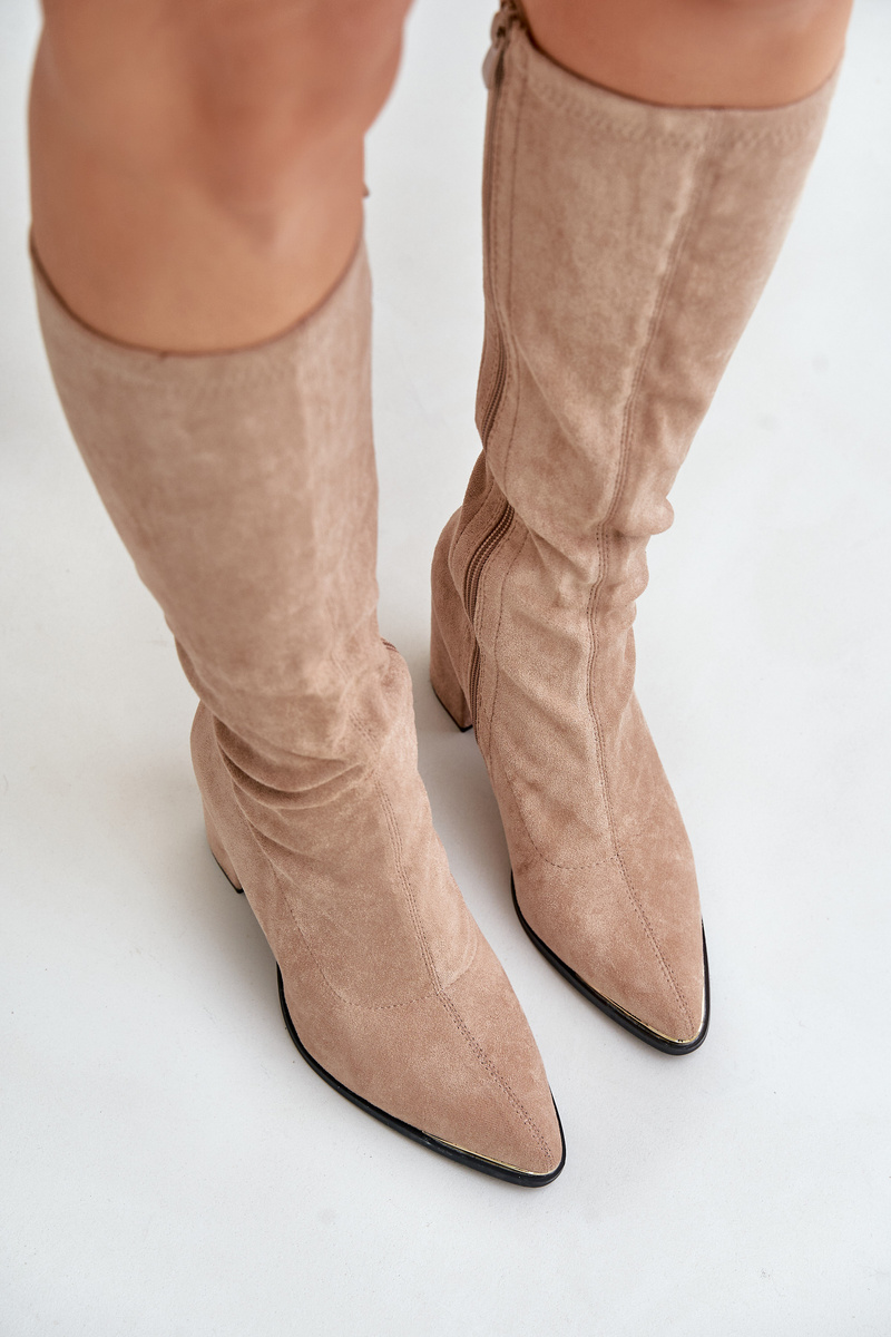 Eko Semišové Čižmy Na Blokovom Opätku Béžové Batirae