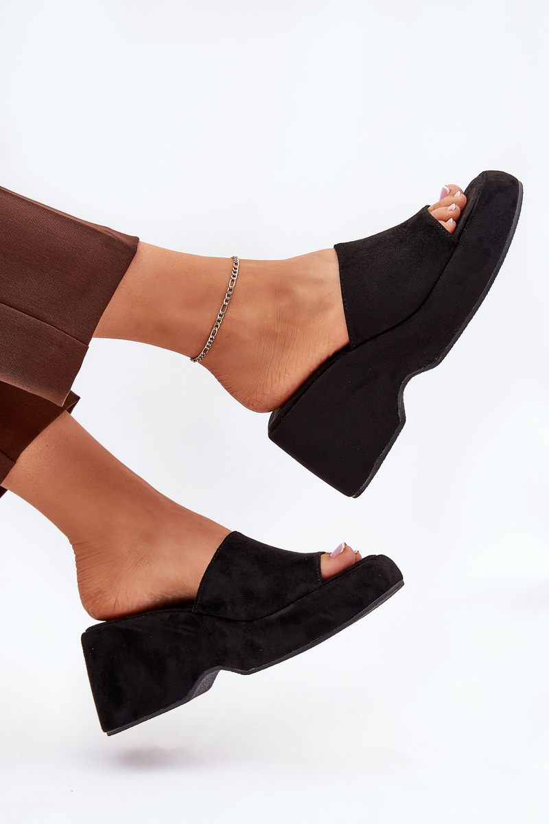 Eko Semišové Dámske Papuče Na Platforme A Klíne Čierne Afisal