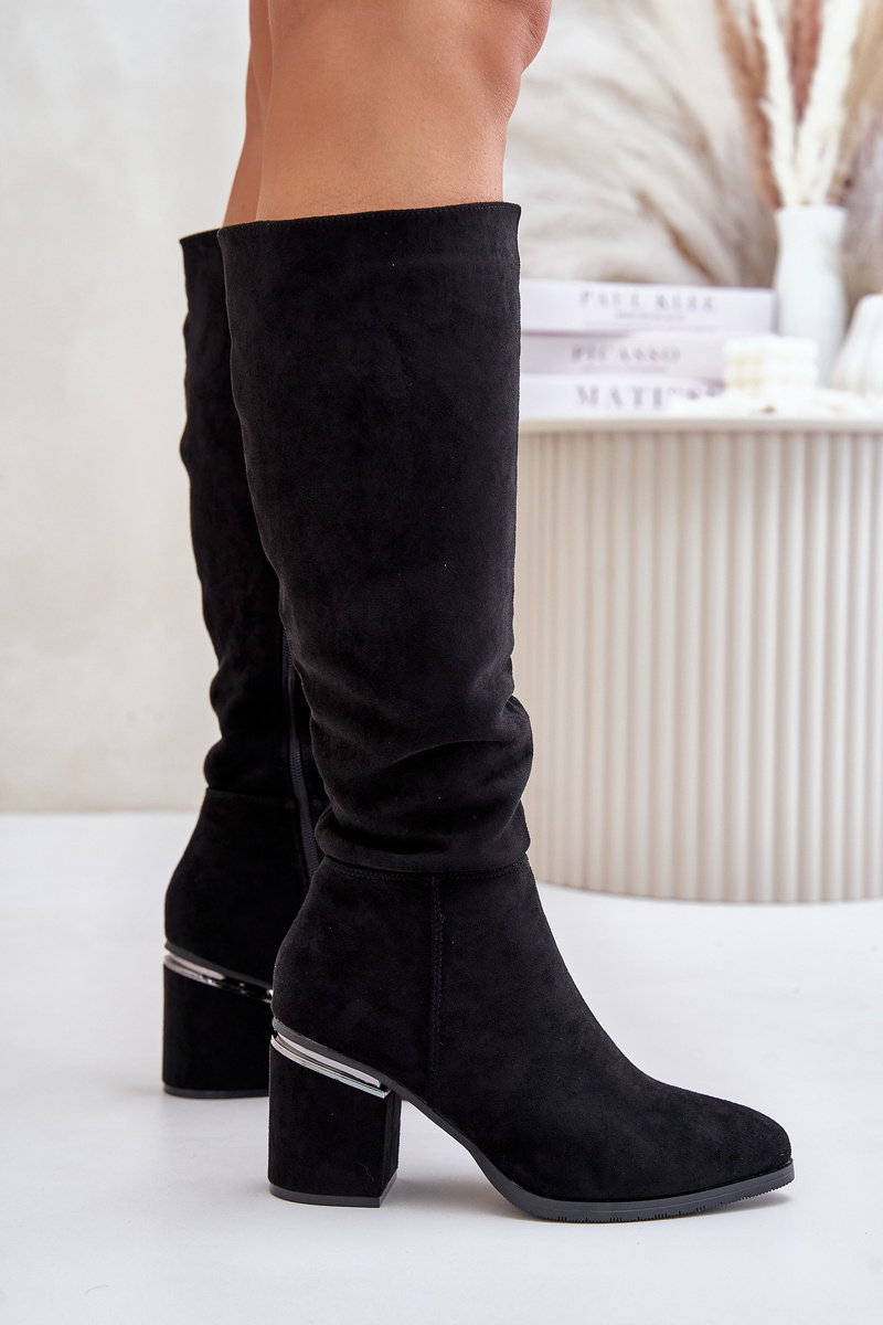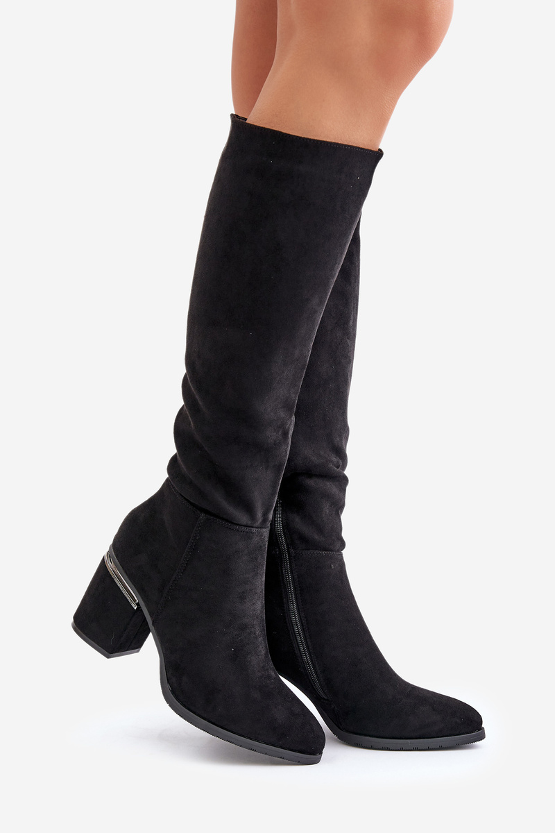 Elegantné kozačky vyrobené z eko semišu sú ideálnou voľbou na chladnejšie dni, spájajúce štýl a pohodlie. Umiestnené na stabilnom blokovom podpätku. Tento model sa vyznačuje špicatými špičkami, ktoré opticky predlžujú nohy. Izolácia s obuvníckym materiálom zabezpečuje tepelný komfort. Tieto kozačky sú skvelým návrhom pre ženy, ktoré ocenia klasiku s nádychom modernity. Při výběru velikosti se řiďte tabulkou velikostí.