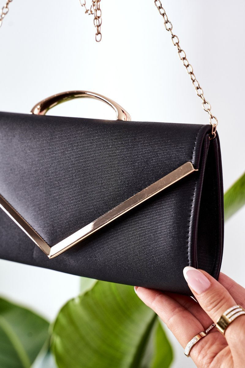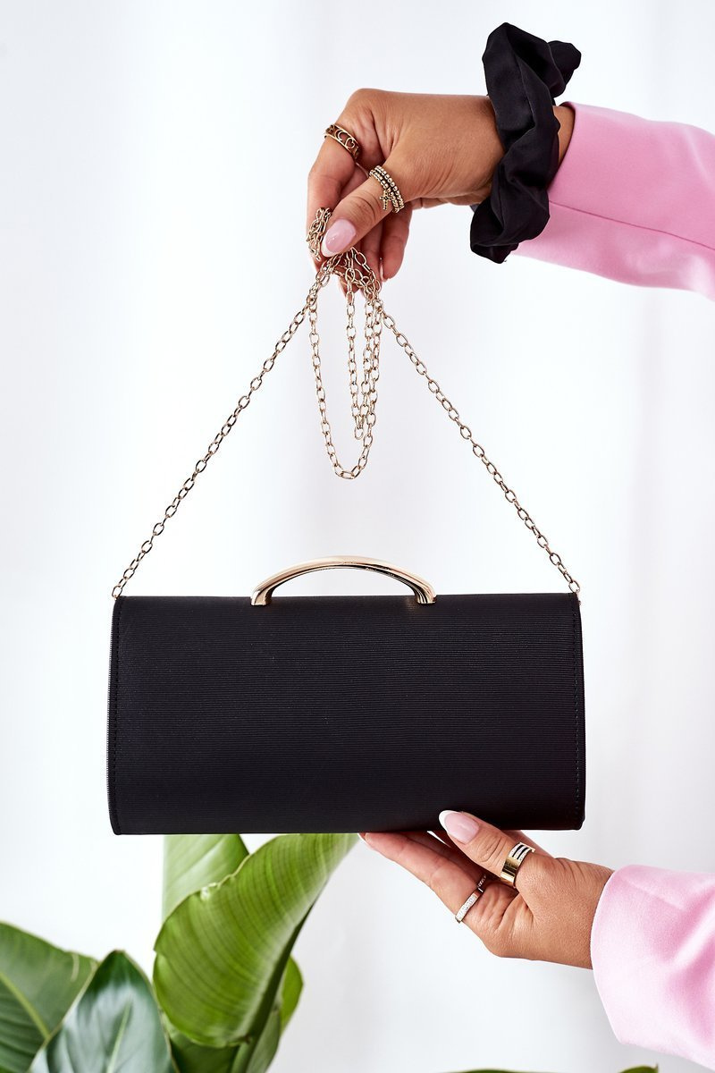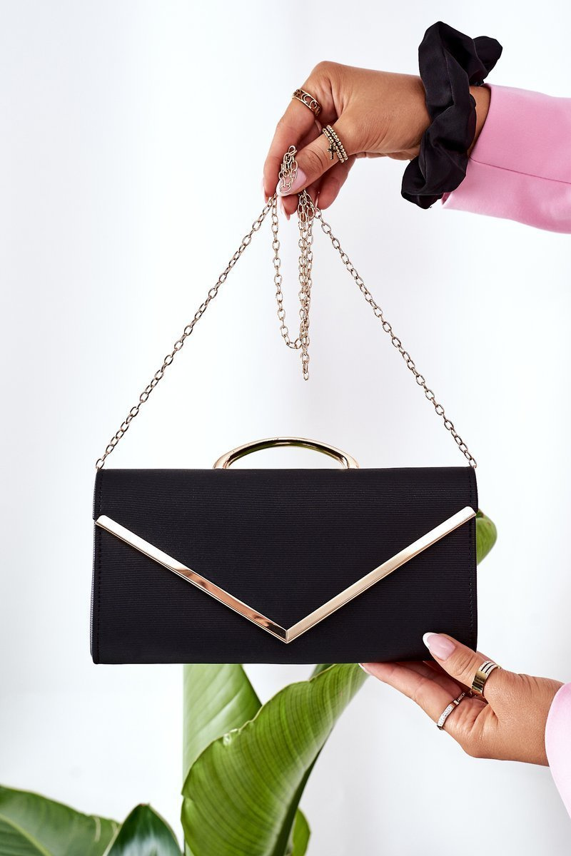 Štýlová taška spojky vyrobená z ekologickej kože. Taška má rukoväť a zlatú, odnímateľnú reťaz. Vo vnútri je vrecko pre malé veci.