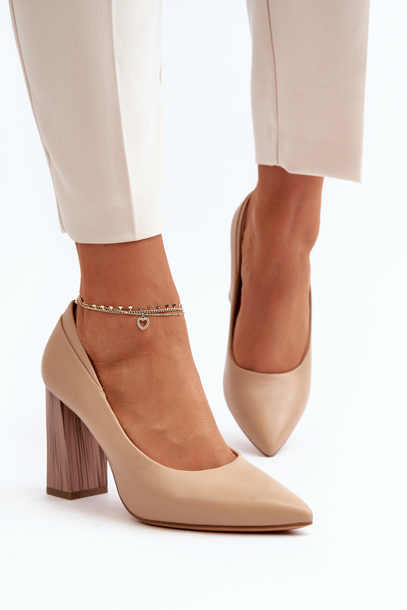 Elegantné čerpadlá boli vložené na vysoké podpätky vo forme stabilného stĺpu, ktorý bol dodatočne zdobený. Mäkká vložka na pokožku zabezpečí pohodlné použitie. Zvuk je vyrobený z ekologickej kože. Ideálny model pre prácu, dátum alebo obchodné stretnutia. Okrem toho bola päta v týchto topánkach stuhnutá. Pri výbere veľkosti navrhnite tabuľku veľkosti.