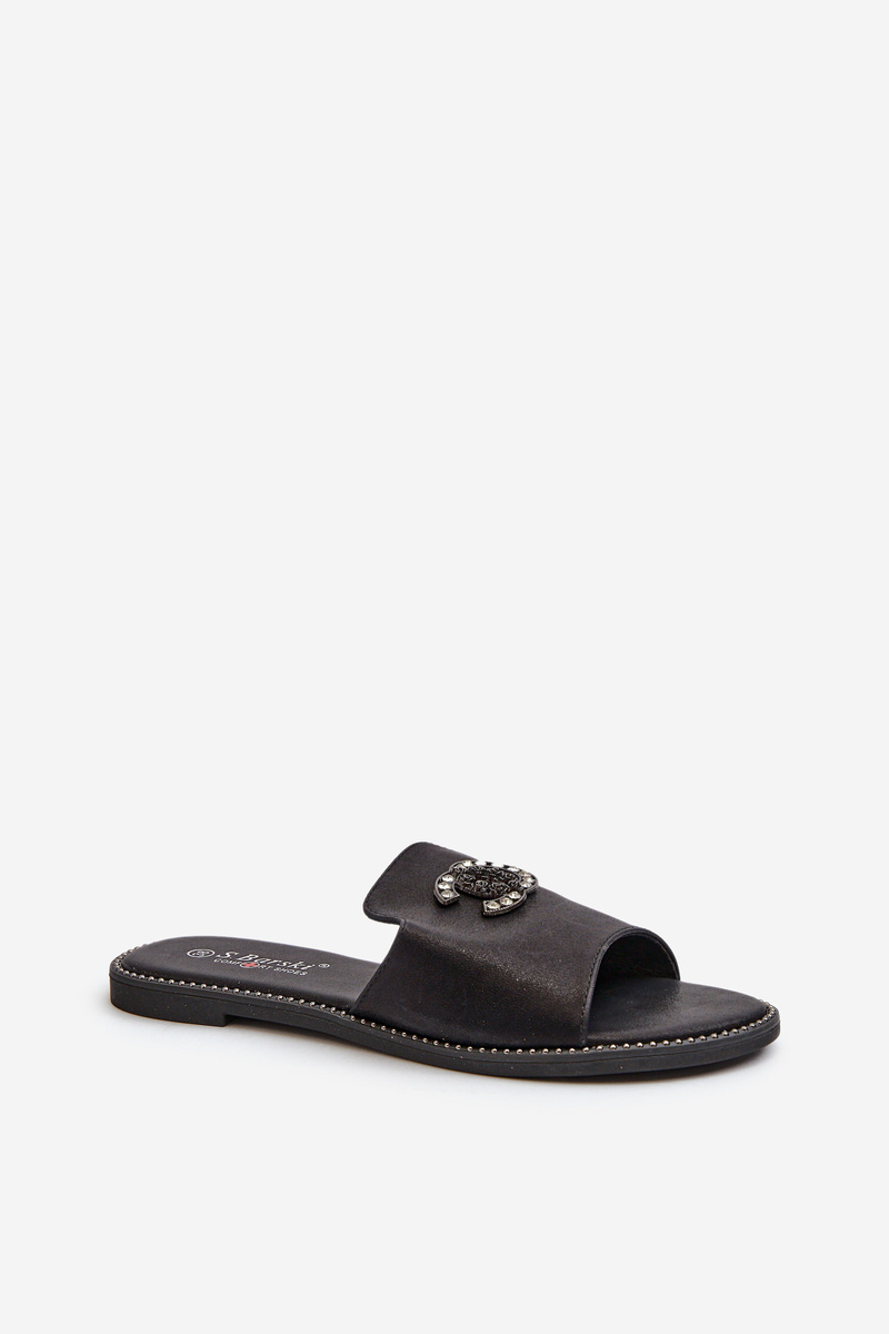 Elegantné Dámske Lesklé Papuče S Ozdobou S.Barski KV27-050 Čierne